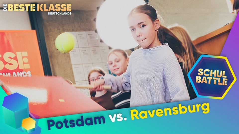 Mit neuen Schulbattle-Duellen, spannenden Wochenshows und einem feierlichen Superfinale können sich alle Quizfans auf neue Folgen von „Die beste Klasse Deutschlands“ (KiKA/ARD/hr) freuen. 16 Schulklassen spielen in den Schulbattle-Vorrunden der Frühjahrsstaffel in schulübergreifenden Challenge- und Quiz-Duellen um den Einzug in die nächste Runde. Am Montag, dem 5. Mai um 13:35 Uhr bei KiKA im TV zu sehen: Das Schulbattle-Duell der Klasse 6B des Welfen-Gymnasium Ravensburg gegen die 6B der Katholischen Marienschule Potsdam.