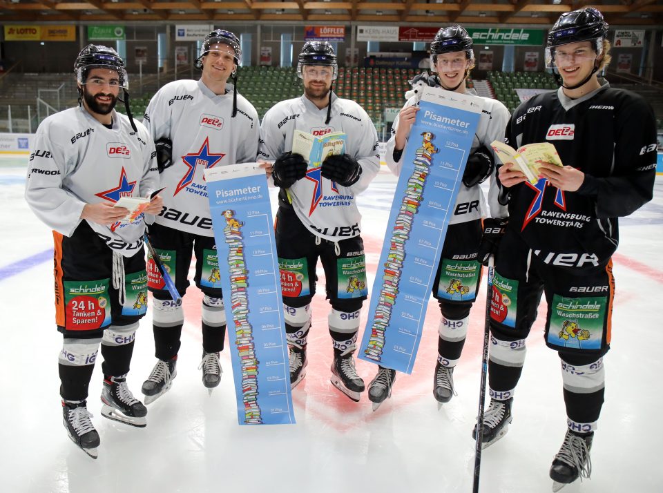 Die Ravensburg Towerstars sind die neuen Schirmherren des landkreisweiten Leseförderprojektes „Büchertürme“. Passend zu ihrem Namen werben die Eishockeycracks bei Kindern der 1. bis 5. Klassen für das Erlesen bekannter Türme im Landkreis. Das Erreichen der Leseziele messen die Lesekinder an der Höhe der gestapelten Bücher. Mit dem Ravensburger Mehlsack (51 Meter) und dem Sender Waldburg (108 Meter) wurden bereits zwei landkreisweit bekannte Leseziele erklommen.