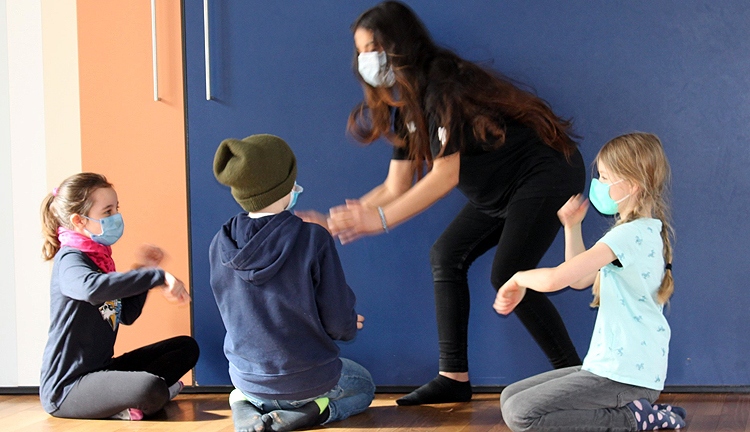 Zwei ganze Stunden widmen die Gruppen der Grundschulen Kuppelnau/St.Christina und Neuwiesen jede Woche dem Theaterprojekt. Die Kinder profitieren ungemein vom gemeinsamen Spiel bei diesem theaterpädagogischen Projekt. Was man nicht vergessen darf: Das coronabedingte „Homeschooling“ hat vor allem auch dazu geführt, dass die Kinder ihre Freunde vermissten, sich nicht mit anderen auseinandersetzen und mit ihnen spielen konnten. Das Theaterprojekt ist auch in dieser Hinsicht ein wunderbares Angebot für Kinder. Am Ende des Schuljahres wird dann „Ein Stück Zukunft“ aufgeführt. Die Viert- und Drittklässler*innen werden auch ein Bühnenbild bauen und ihr Stück zum Thema Nachhaltigkeit ihren jüngeren Mitschüler*innen sowie im Theater Ravensburg präsentieren.
