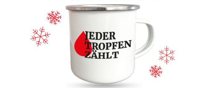 Die DRK-Blutspendedienste bitten alle Bürger:innen auch zwischen den Feiertagen Blut zu spenden. Gerade in dieser Zeit kommt es erfahrungsgemäß vermehrt zu Engpässen bei einzelnen Blutgruppen. Als Dankeschön für die gute Tat erhalten Blutspender:innen im Zeitraum vom 20.12.2024 bis 17.01.2025 auf den Blutspendeterminen eine exklusive Emailletasse im DRK-Design.