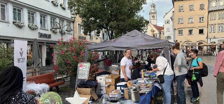 Auszubildende, Studierende und Praktikanten von Vetter, dem global tätigen Pharmadienstleister, engagierten sich am 20. August beim traditionellen Abendflohmarkt in Ravensburg. Im Rahmen des 2021 gestarteten Programms Vetter goes Social hatte der Unternehmensnachwuchs intern alle Mitarbeitenden zu Sachspenden aufgerufen. Der gesamte Erlös kommt Ukraine-Geflüchteten zugute.