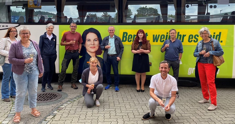 Am Montag, den 2.August, haben Vorstände und Mitglieder der Kreisverbände Ravensburg und Wangen von Bündnis 90/Die Grünen gemeinsam mit der Unternehmerin und Kreisrätin Elke Müller und der Bundestagsabgeordneten Agnieszka Brugger den grünen Bus offiziell eingeweiht. Dieser Bus wurde mit den Bildern von Annalena Baerbock und der Bundestagskandidatin Brugger bedruckt und ist bereits einige Tage auf der Linie 30 unterwegs.
