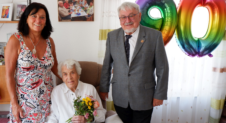 Anneliese Ederer hat am 6. Juni ihren 90. Geburtstag gefeiert. Stellvertretend für OB Clemens Moll überreichte Stadtrat Bernd Junginger der Jubilarin herzliche Glückwünsche und ein Geschenk der Stadt sowie im Namen von Ministerpräsident Winfried Kretschmann die Ehrenurkunde des Landes.