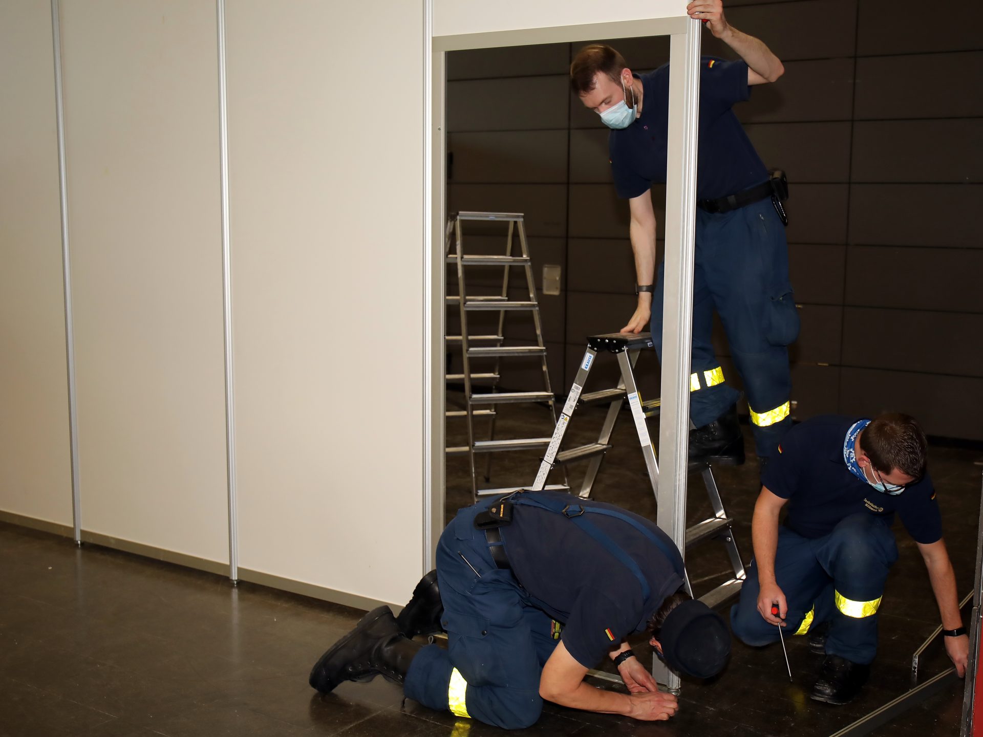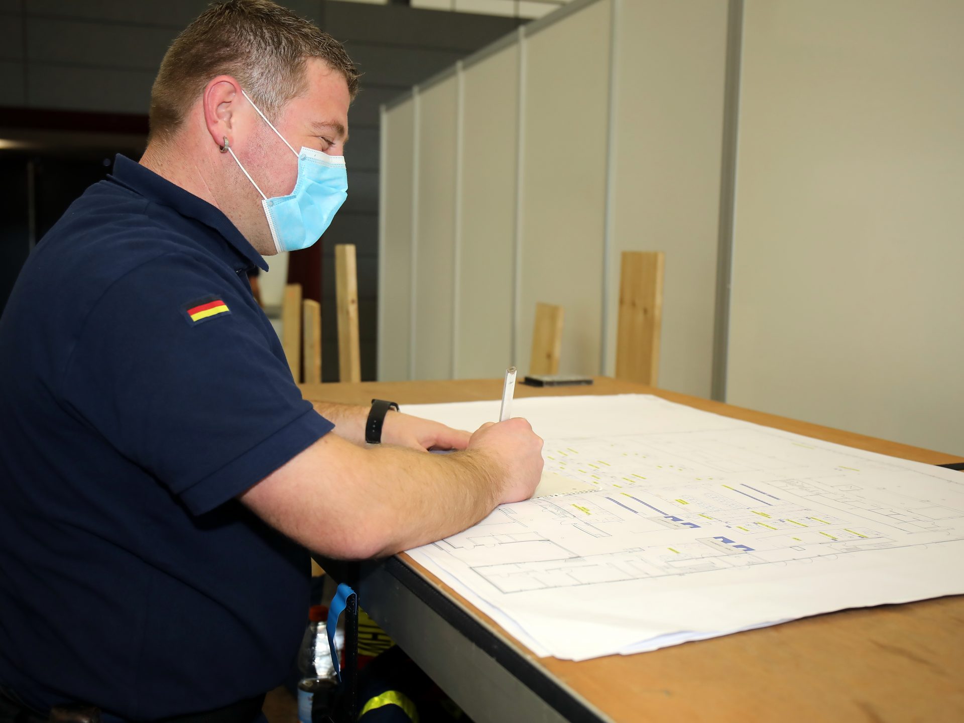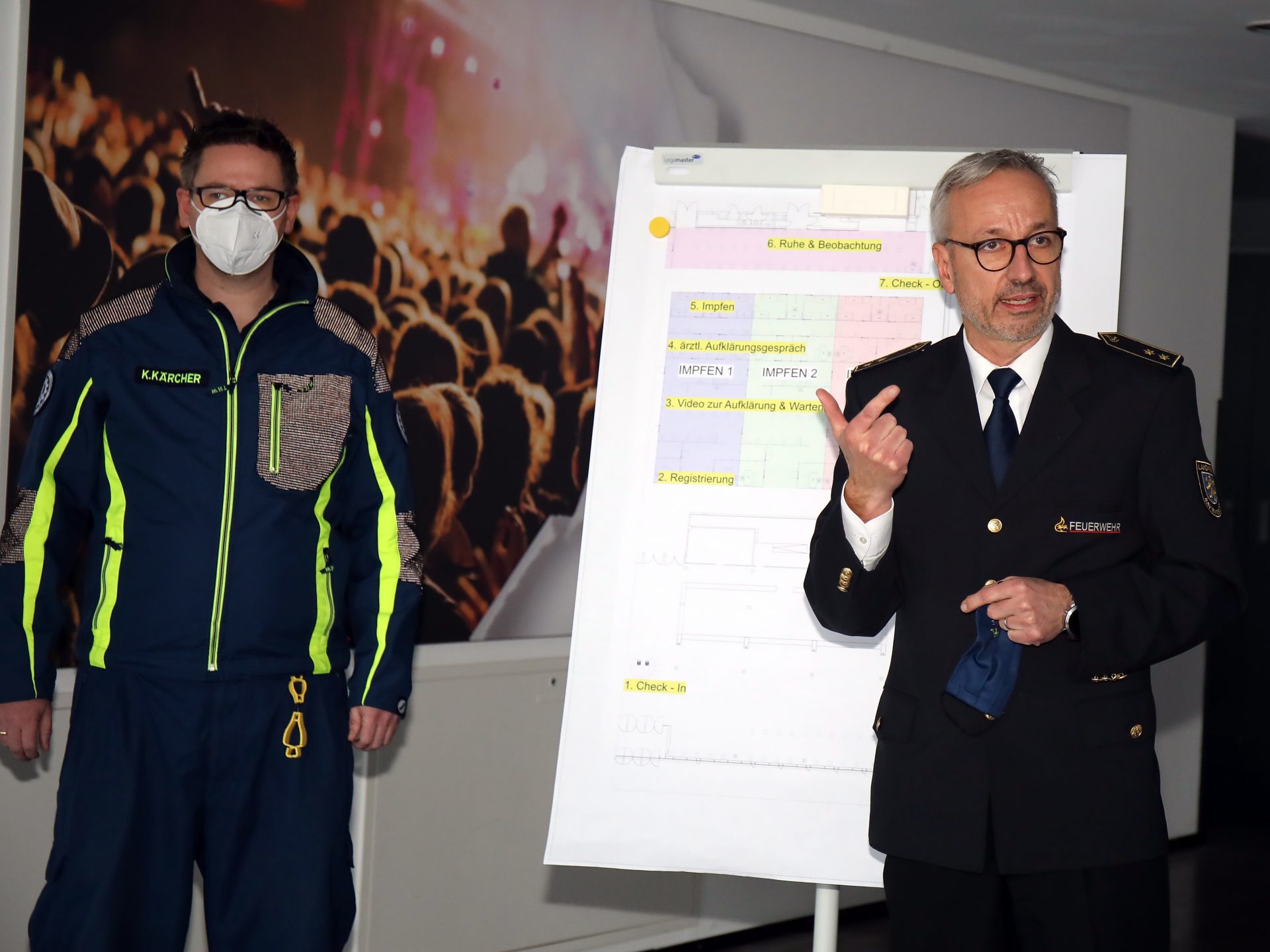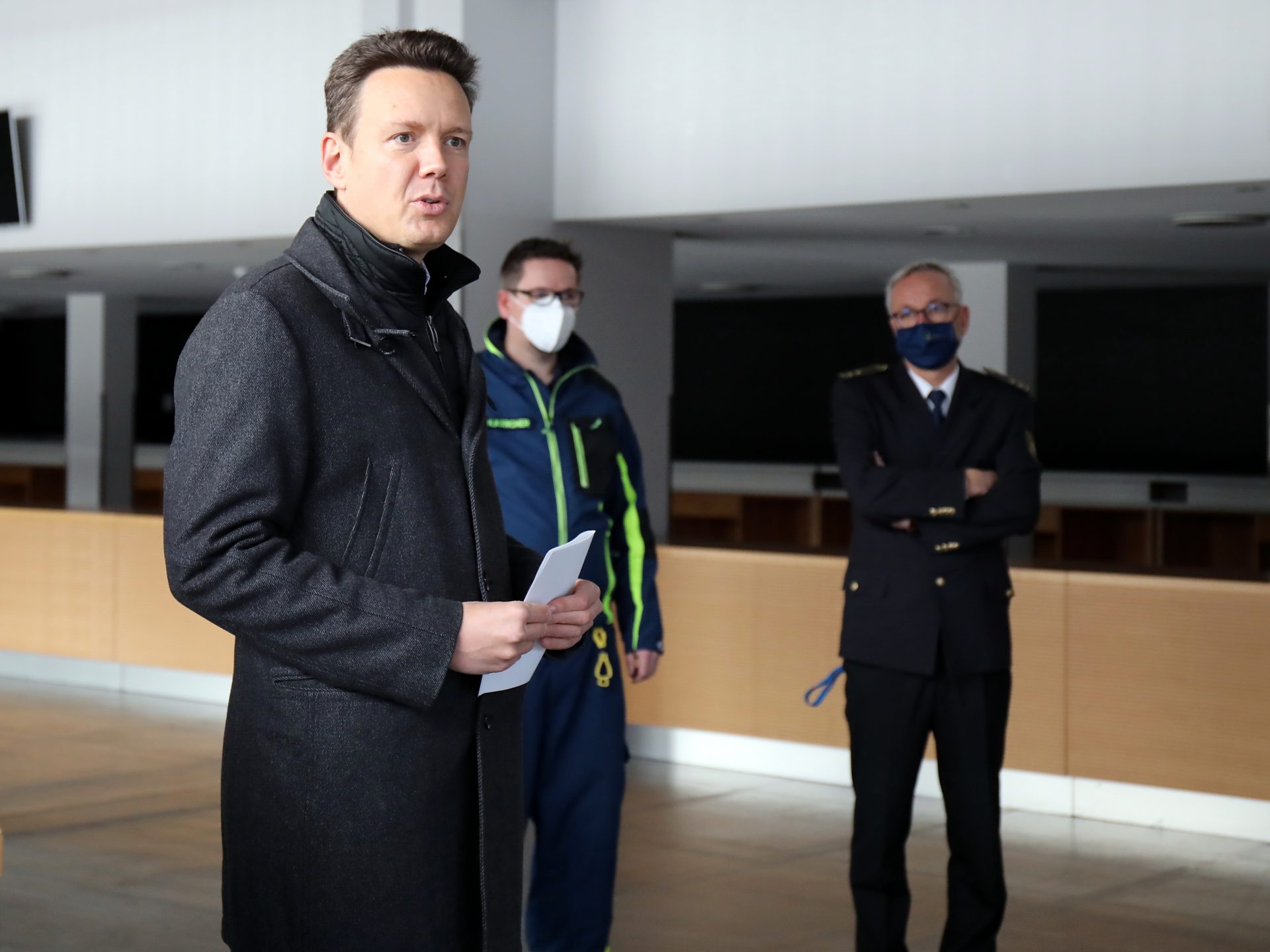 Die zu realisierende Infrastruktur und Logistik beschränkt sich hier nicht nur auf die direkten Bereiche der eigentlichen Impfung, sondern auch der Mitarbeiter. „Wir werden hier rund 60 Mitarbeiter und 14 Ärzte im 2-Schichtbetrieb im Einsatz haben. Da werden natürlich auch entsprechende Pausen und Aufenthaltsräumlichkeiten benötigt“, berichtet Surbeck weiter. Während die regionale „Blaulicht-Familie“ sich um Aufbau und die Unterhaltung der Räumlichkeiten kümmert, stehen vor der Kreisverwaltung weitere organisatorische Herausforderungen. So fällt zum Beispiel auch die Bereitstellung der IT-Technik und die personelle Besetzung der nichtmedizinischen Bereiche in den Zuständigkeitsbereich des Landkreises.
