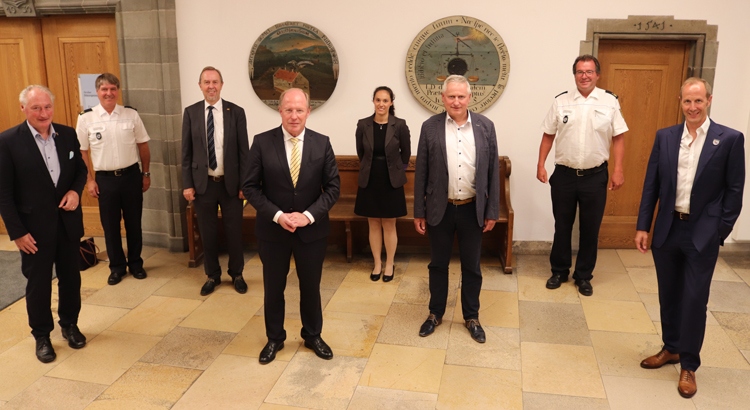 Im Anschluss empfing Oberbürgermeister Daniel Rapp die Gäste im Rathaus. Er bedankte sich bei den Innenpolitikern dafür, dass sie sich mit Erfolg für den Standort Ravensburg für das neu geschaffene Polizeipräsidium eingesetzt hatten. „Dies war die richtige Entscheidung für die Sicherheitsarchitektur in der gesamten Region. Der Wunsch nach einem starken Staat wird über alle gesellschaftlichen Schichten hinweg lauter“. OB Rapp und CDU-Stadtrat und Landtagsabgeordneter August Schuler freuen sich über die sehr gute Zusammenarbeit zwischen den Kommunen und der Polizei vor Ort: „Die Herausforderungen sind groß. Aber wir sind hier bestens aufgestellt und ziehen an einem Strang!“