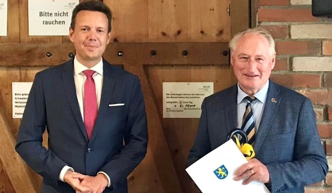 Für seine 30-jährige Tätigkeit im Kreisrat ist August Schuler MdL mit einer Urkunde und Medaille des Landkreistages Baden-Württemberg geehrt worden. Landrat Harald Sievers nahm im Bauernhausmuseum Wolfegg die Ehrung vor und dankte August Schuler in einer Laudatio.