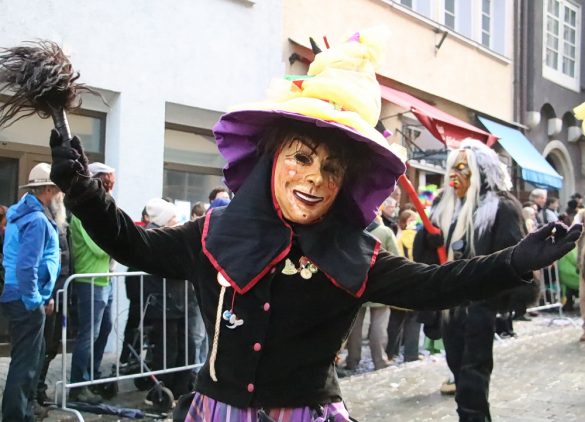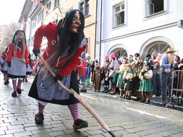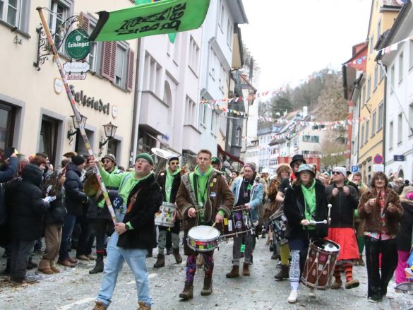 Traditionell zog am Montagmorgen der große Rosenmontag-Narrensprung durch die Ravensburger Innenstadt. Der von der Schwarze Veri Zunft organisierte Sprung zählt seit vielen Jahren zu den größten Brauchtumsumzügen in der Region. Mit dabei waren in diesem Jahr 58 Zünfte aus der gesamten Region, die von ihren örtlichen Fanfarenzügen, Lumpenkapellen und Spielmannszügen musikalisch unterstützt wurden.