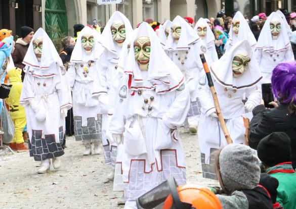 Bei den vielen völlig unterschiedlichen Masken wurde auch daran erinnert, dass sich hinter den allermeisten Masken – neben den historischen Ursprüngen der Winter- und Krankheitsaustreibung sowie dem etwas späteren Aufmucken gegenüber der Obrigkeit – Persönlichkeiten, Figuren oder Gegebenheiten der jeweiligen Ortschaften verbergen.