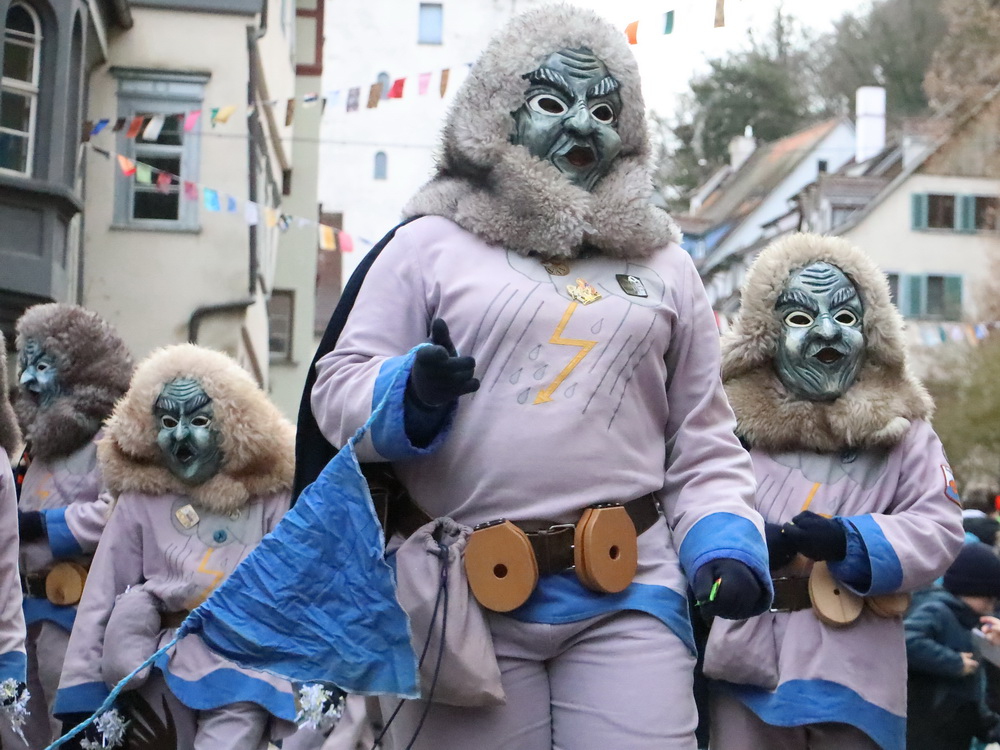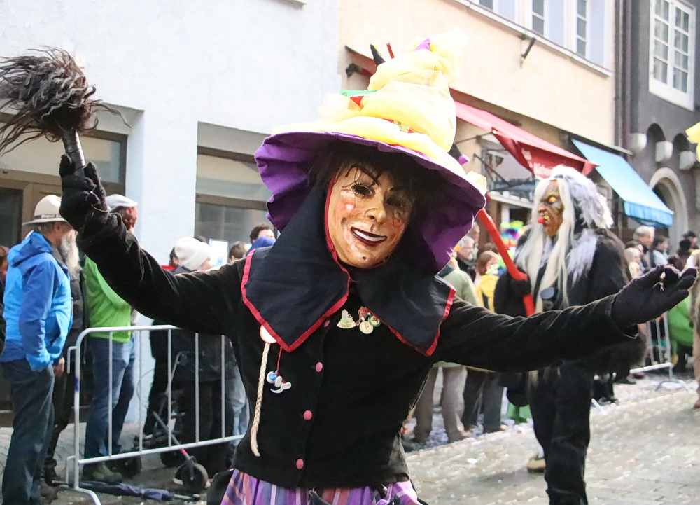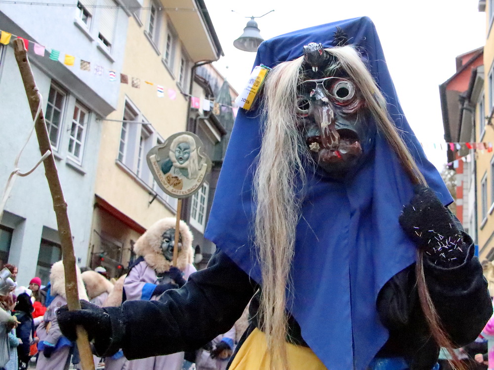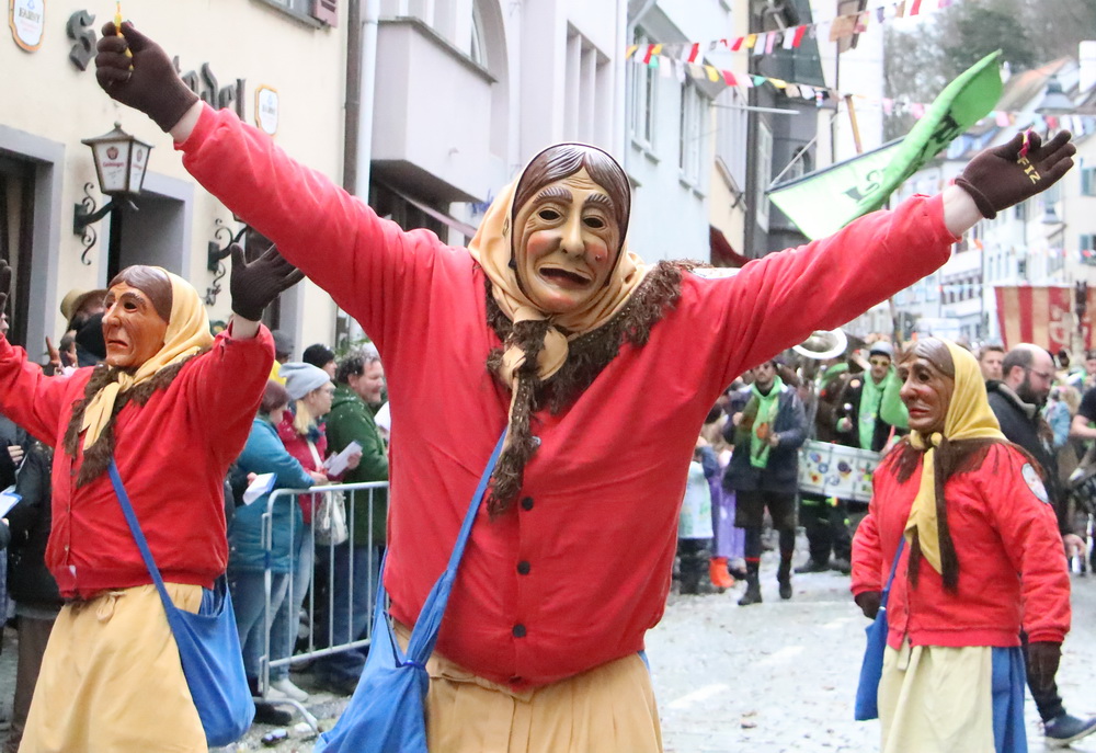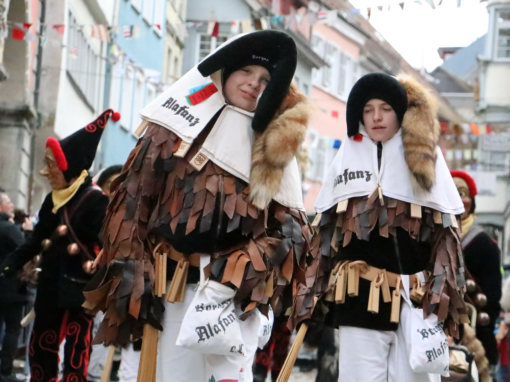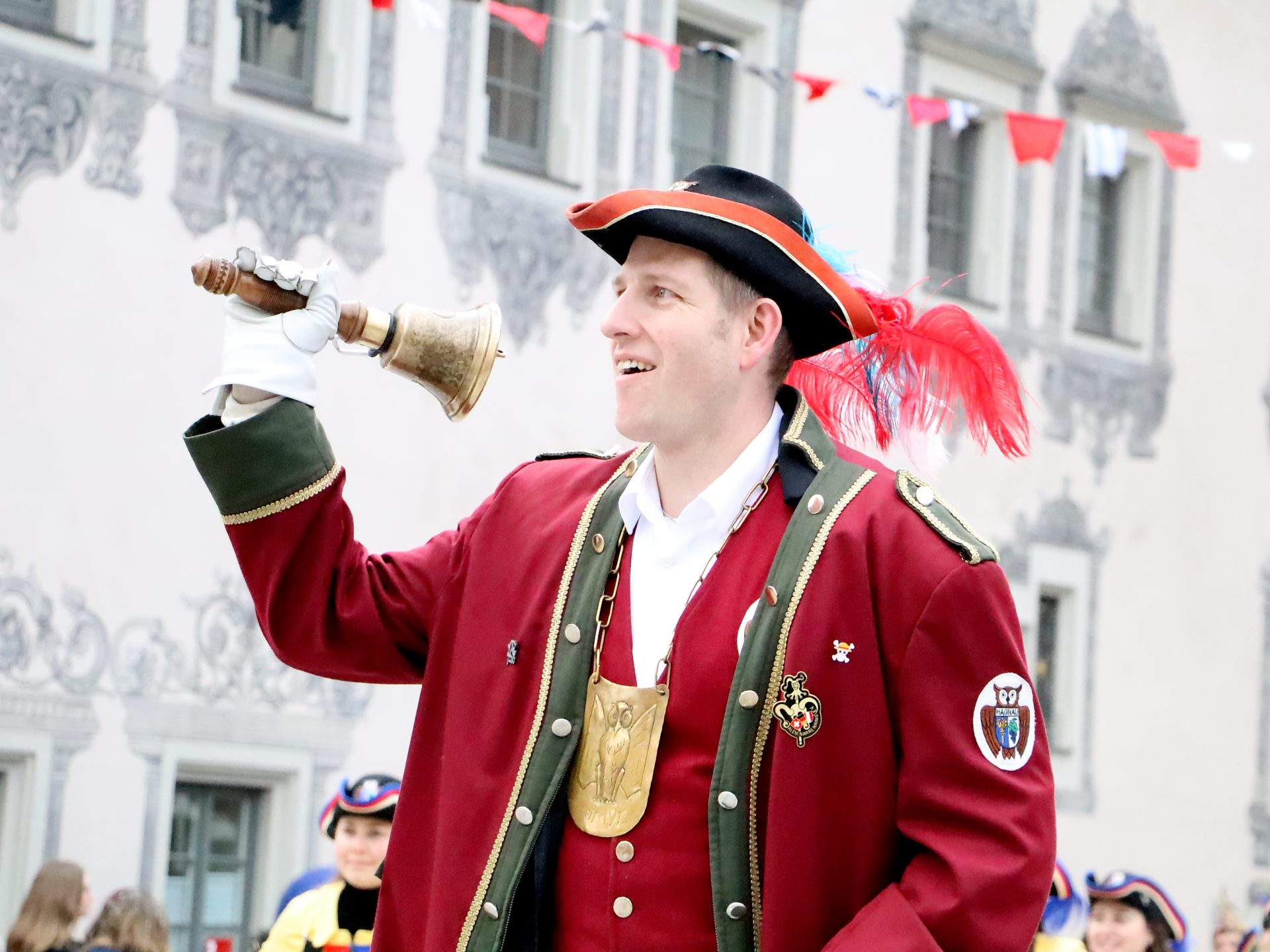 Zu Beginn des farbenfrohen Spektakels blitzte sogar die Sonne über der Ravensburger Innenstadt – wenn auch nur für den ersten Teil. Danach wurde es für die Tausenden von Zuschauern doch recht frostig. Der Stimmung tat dies freilich keinen Abbruch, und für die Antwort auf den richtigen Zunftruf waren die Narren nicht allzu geizig mit dem Verteilen von Süßigkeiten.