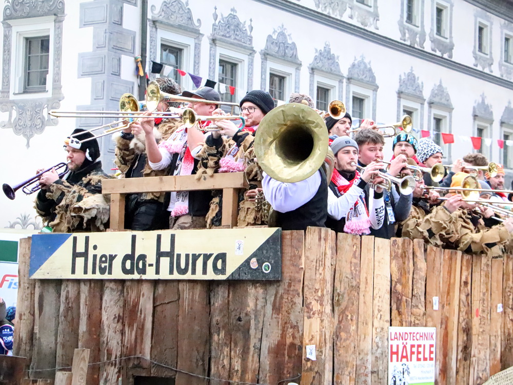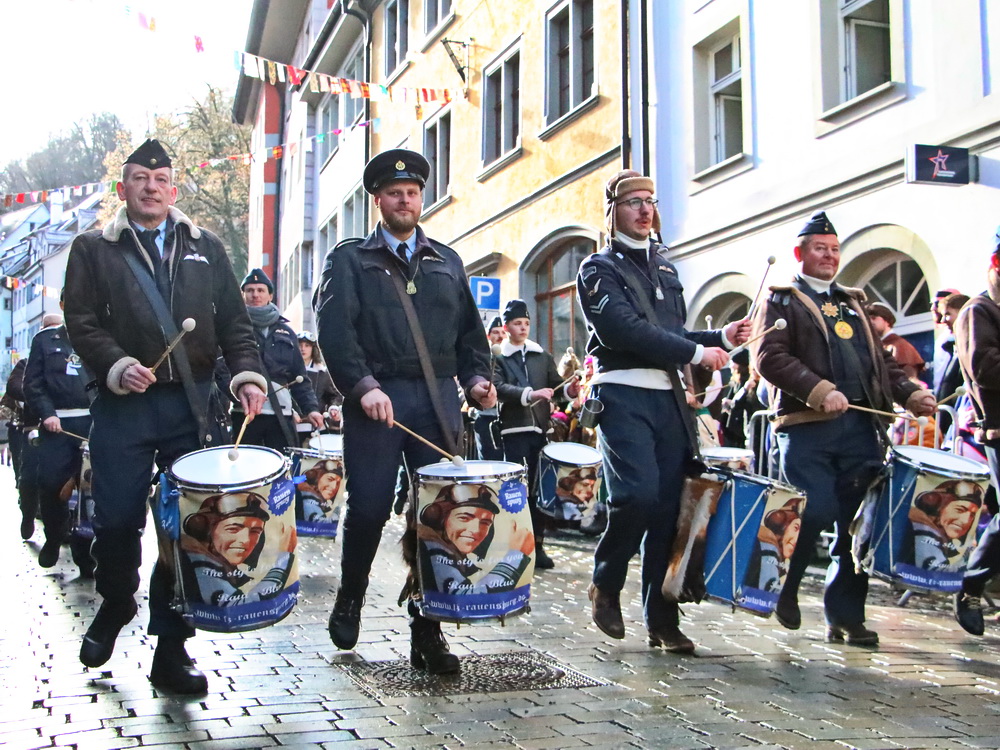 Traditionell zog am Montagmorgen der große Rosenmontag-Narrensprung durch die Ravensburger Innenstadt. Der von der Schwarze Veri Zunft organisierte Sprung zählt seit vielen Jahren zu den größten Brauchtumsumzügen in der Region. Mit dabei waren in diesem Jahr 58 Zünfte aus der gesamten Region, die von ihren örtlichen Fanfarenzügen, Lumpenkapellen und Spielmannszügen musikalisch unterstützt wurden.