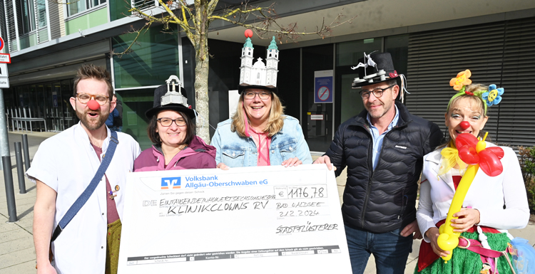 Erneut haben die Bad Waldseer Stadtflüsterer an der Fasnet für die Klinikclowns der Oberschwabenklinik gesammelt. Dabei zeigte sich die Bevölkerung der Kurstadt noch großzügiger als im Vorjahr: Gleich 1176,78 Euro überreichten die Flüsterer Heike Rothenhäusler, Andrea Sontag und Michael Noppenberger an die Klinikclowns, die vor wenigen Monaten ihr 25-jähriges Wiegenfest am St. Elisabethen-Klinikum feierten und sich ausschließlich durch Spenden finanzieren.
