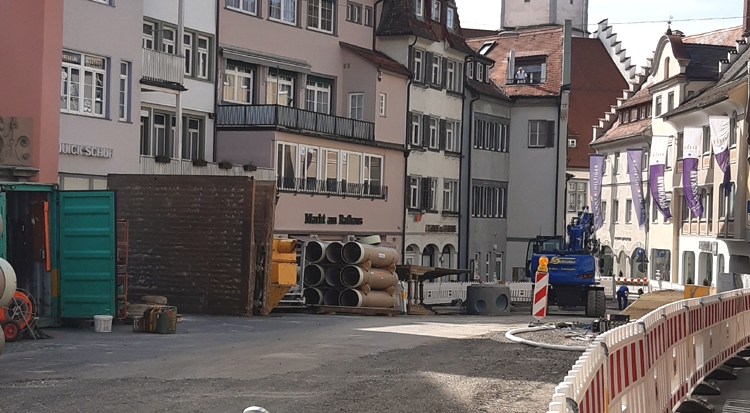 Im Zuge der Sanierung des Gespinstmarktes durch die Stadt Ravensburg erneuert die TWS Netz GmbH die Strom- und Wasserleitungen in diesem Bereich und verlegt Leerrohre, in die später Breitbandkabel für das schnelle Internet eingezogen werden.