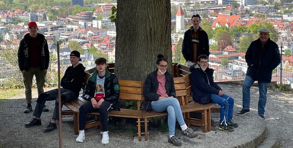 Nachdem die von der Schreinerei des Berufsbildungswerks Adolf Aich hergestellte Baumbank unterhalb der Kirche St. Christina in die Jahre gekommen ist, wurde sie nun wieder „neu“ gemacht. Auf Initiative von Hermann Schoch, von der Kirchengemeinde St. Christina, haben sich die Teilnehmer der Berufsvorbereitung der Bank angenommen. Im Herbst wurde sie von den angehenden Zimmerleuten abgebaut. Über den Winter haben die Teilnehmer die Bank abgeschliffen und ihr einen neuen Anstrich verpasst.