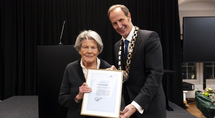 Im Namen des Gemeinderates und der gesamten Stadt Ravensburg, verlieh Oberbürgermeister Dr. Daniel Rapp am 3. Februar das Ehrenbürgerrecht an Dorothee Hess-Maier. Zu der Feier im Schwörsaal kamen zahlreiche geladene Gäste aus Politik, Wirtschaft und Gesellschaft. Mit ihrer Anwesenheit brachten sie die enorme Wertschätzung für diese besondere Ehrung zum Ausdruck.