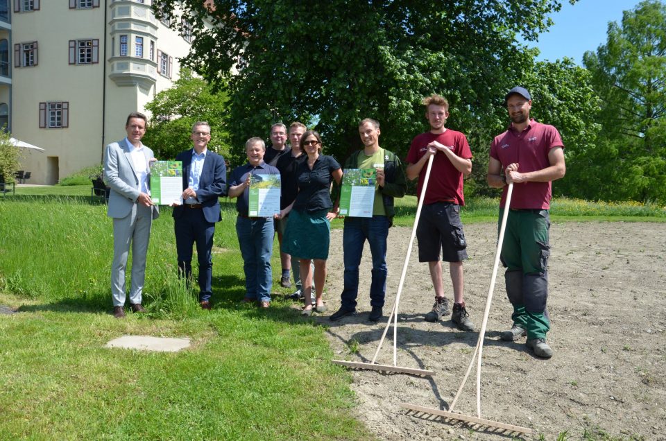 Eine Bodenfläche, die zuvor normaler Rasen war, wird bald in leuchtenden Farben erblühen und zahlreiche Insekten und Bienen anlocken. Eingesät von den Garten- und Landschaftsbauern der Stiftung Liebenau vor dem Liebenauer Schloss und direkt an der Bundesstraße am Standort Hegenberg. Zunächst. Denn weitere Standorte sollen kreisübergreifend folgen.
