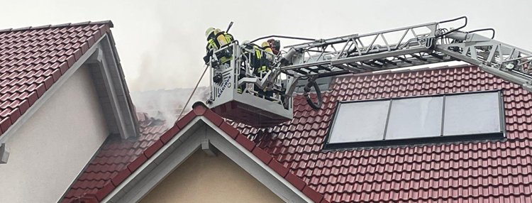 Bei Ankunft der ersten Einsatzkräfte drang sichtbarer Rauch aus dem Dach des Gebäudes. Ein Angriffstrupp unter Atemschutz drang sofort in das Dachgeschoss des Gebäudes ein und begann mit der Brandbekämpfung. Parallel dazu wurde diese auch von außen über die Drehleiter eingeleitet. Das Feuer hatte sich zu diesem Zeitpunkt bereits in die Wärmedämmung des Daches und einer Außenwand ausgebreitet.