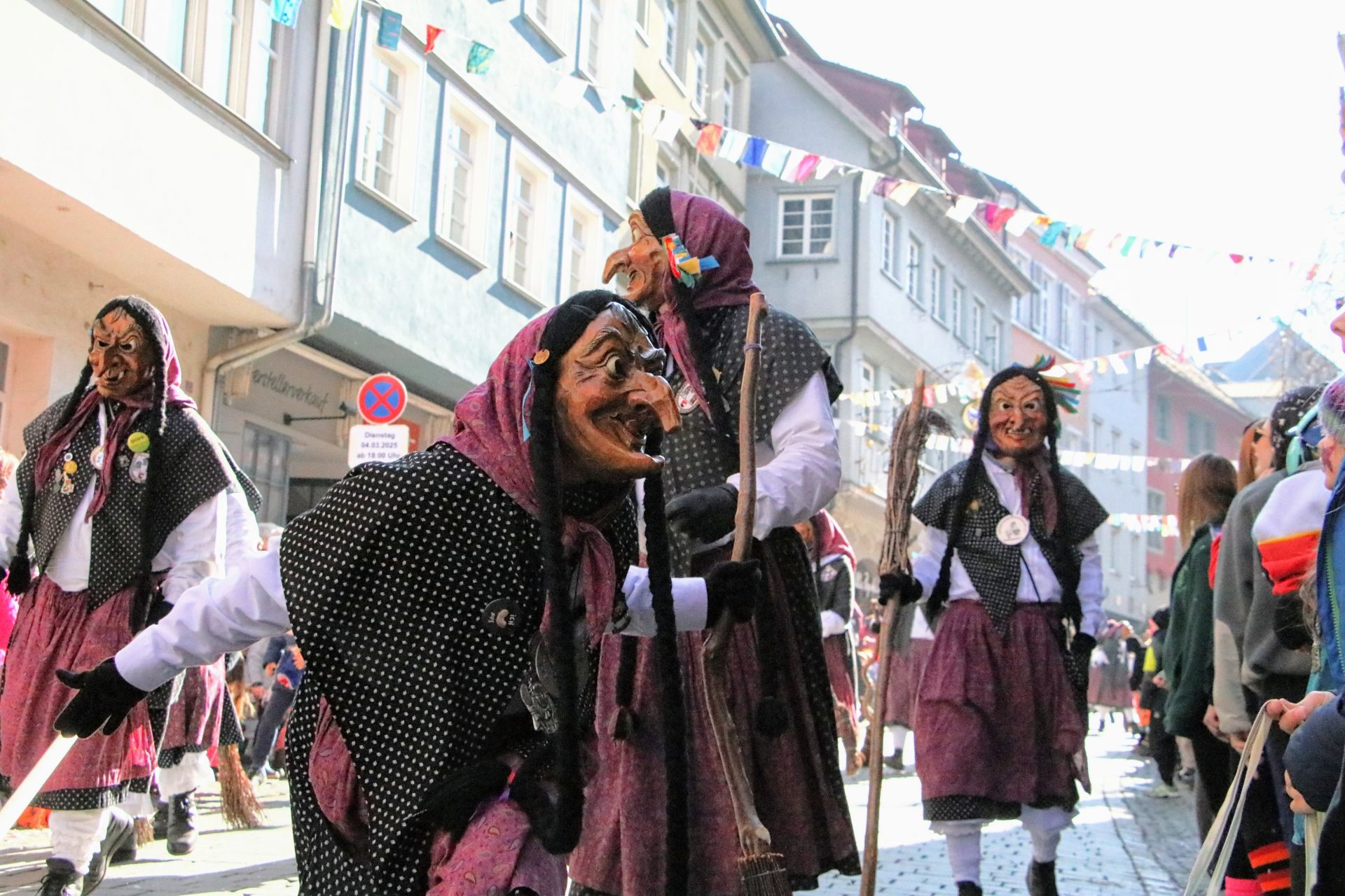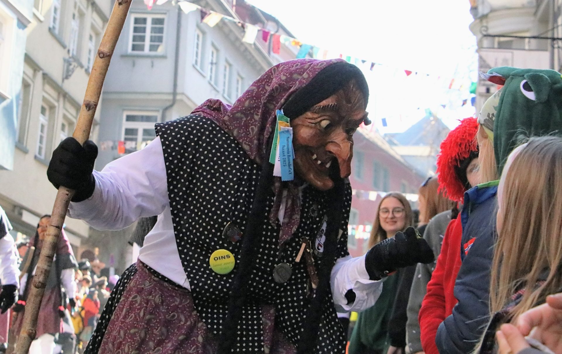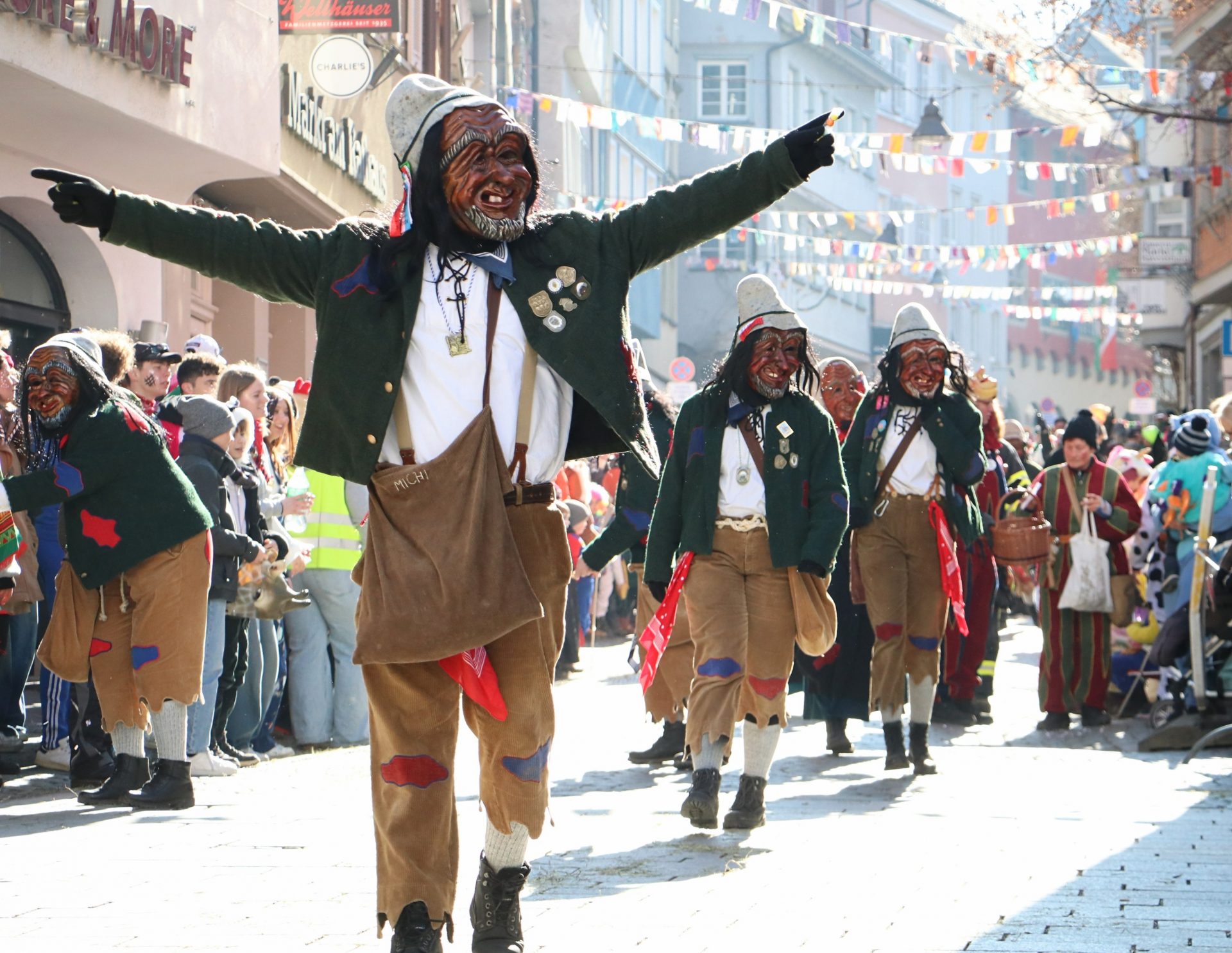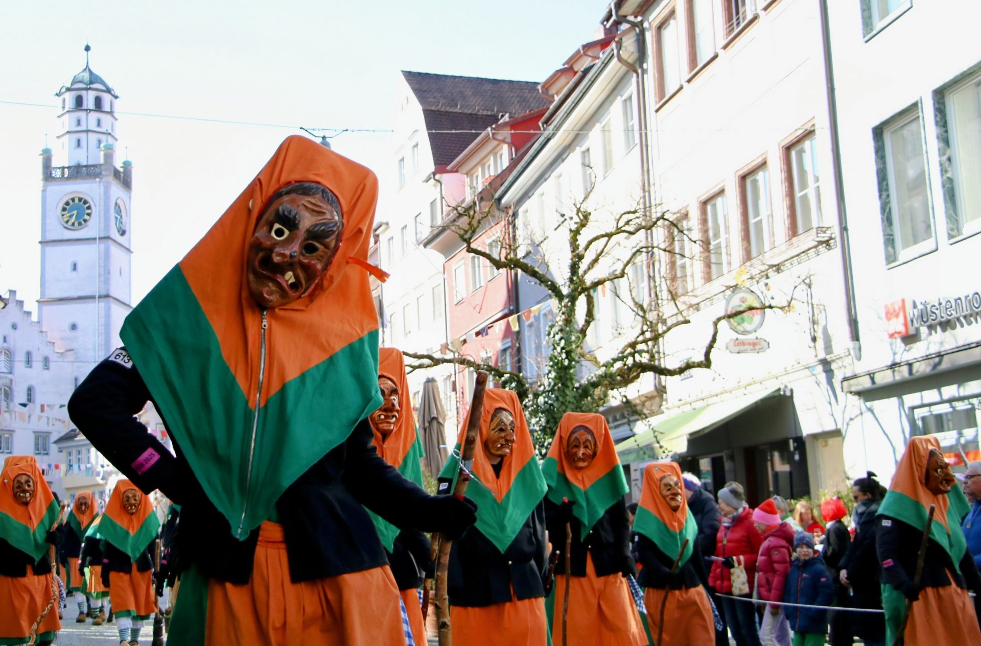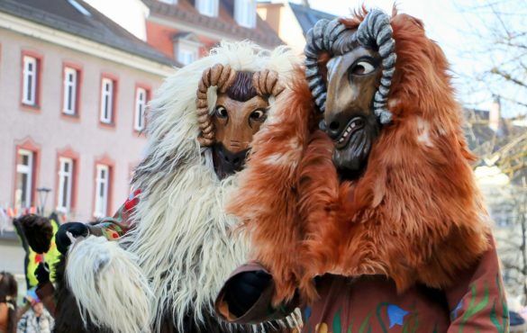 Bei den vielen völlig unterschiedlichen Masken wurde auch daran erinnert, dass hinter den allermeisten Masken – neben den historischen Ursprüngen der Winter- und Krankheitsaustreibung sowie etwas später dem Aufmucken gegenüber der Obrigkeit – auch Persönlichkeiten, Figuren oder Gegebenheiten der jeweiligen Ortschaften stecken. So oder so waren die Zuschauer begeistert, und wenn beim Anschreien des Narrenrufs die richtige Antwort kam, gab es in der Regel eine süße Belohnung. Andernfalls eine ordentliche Portion Konfetti.