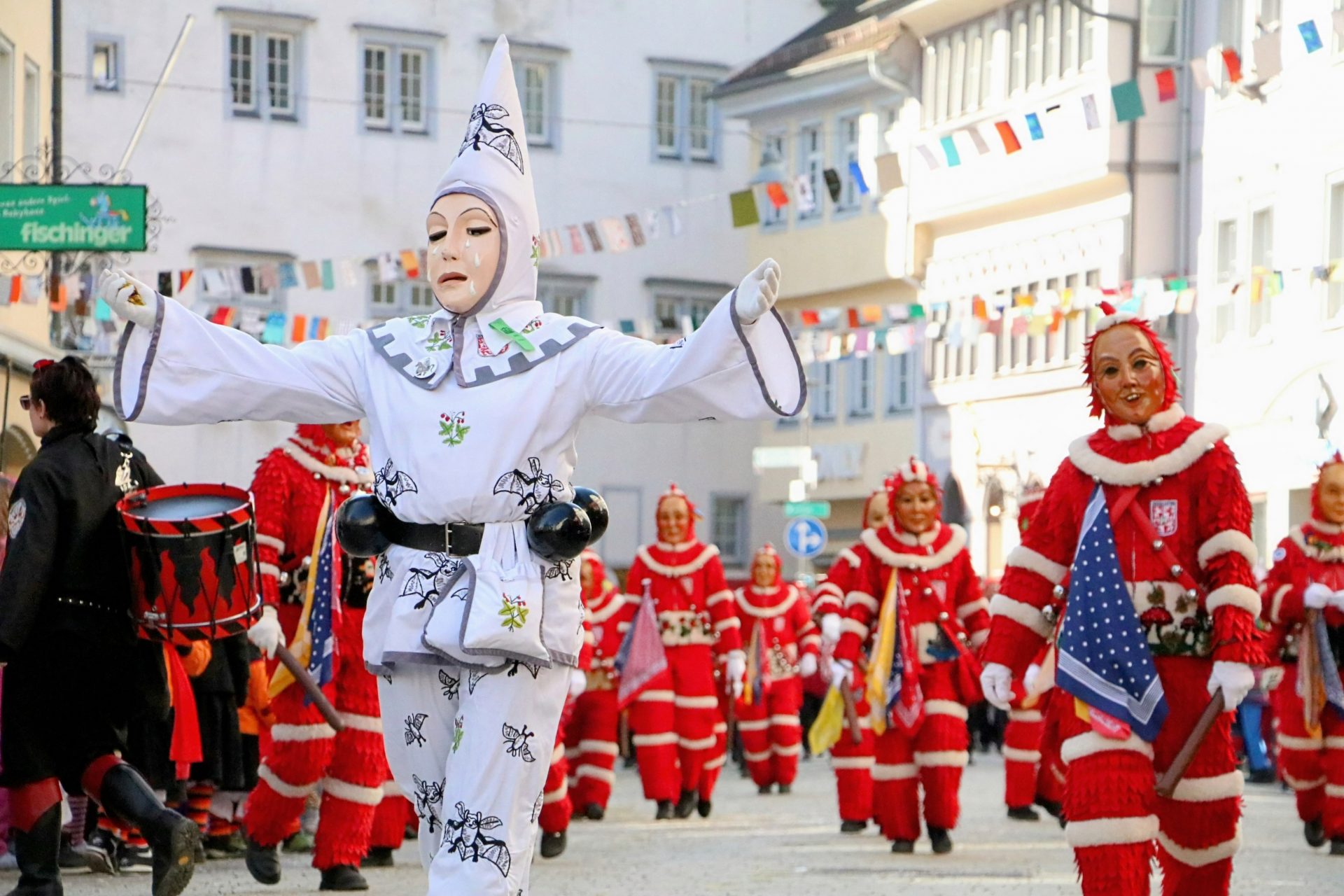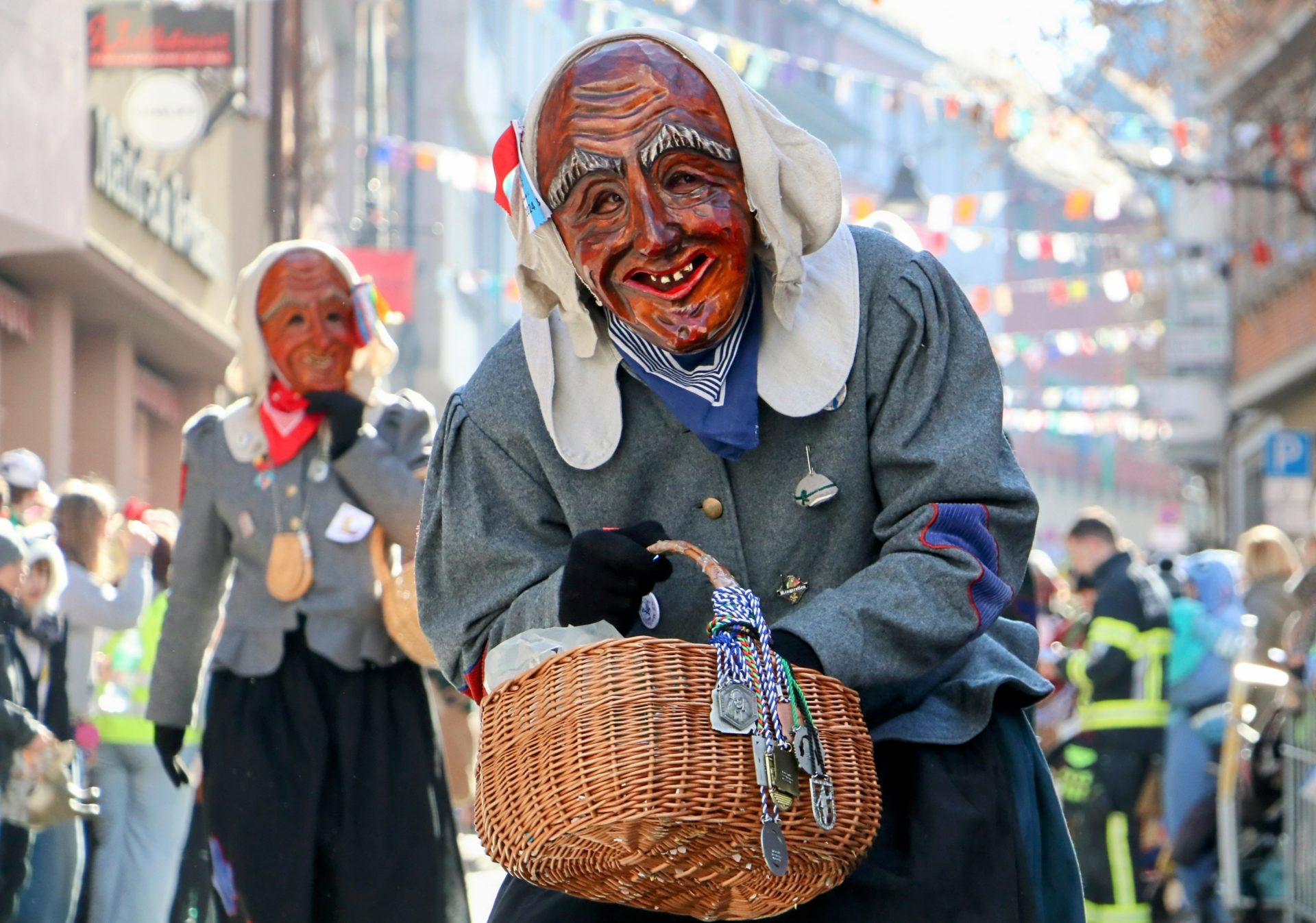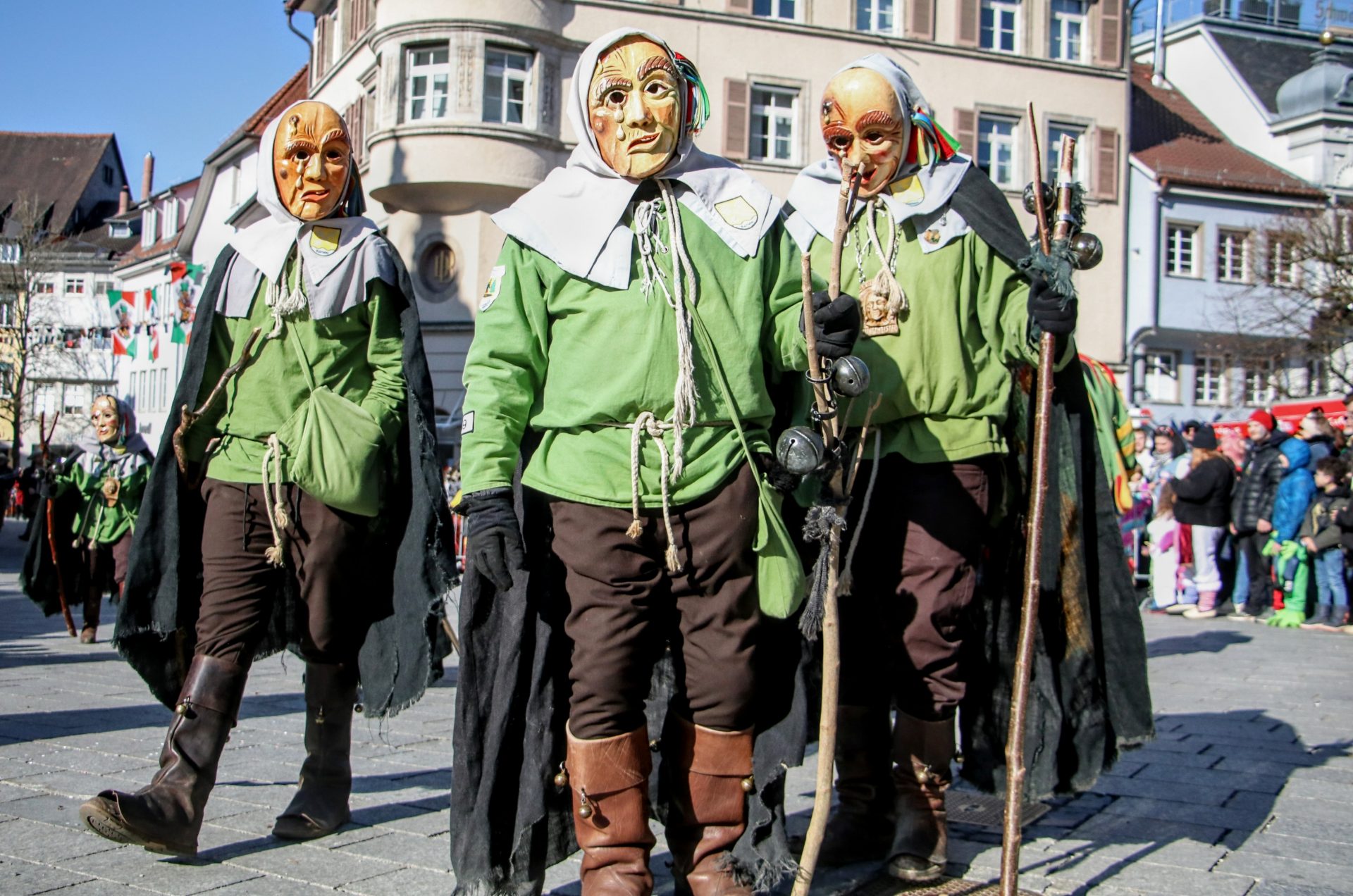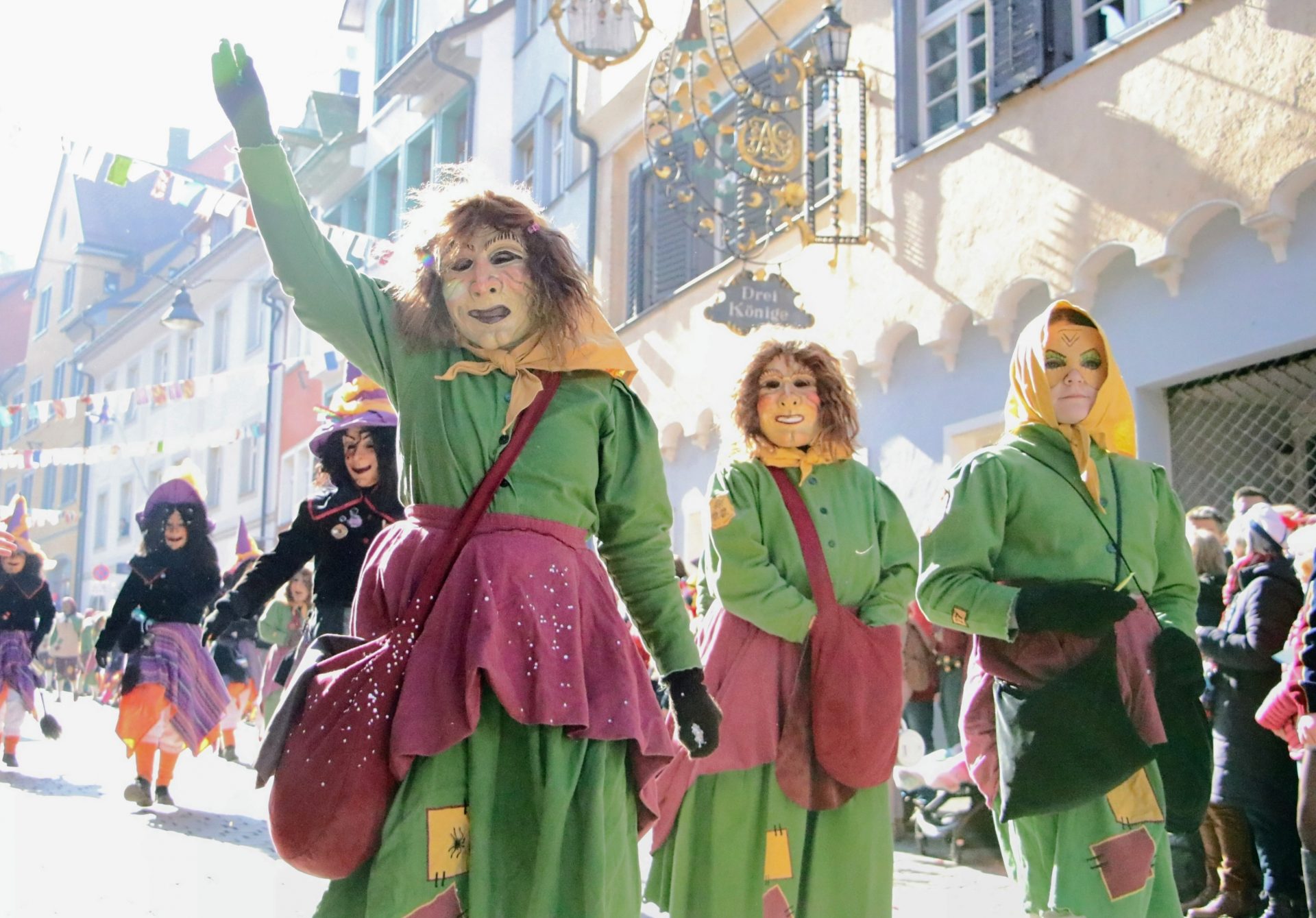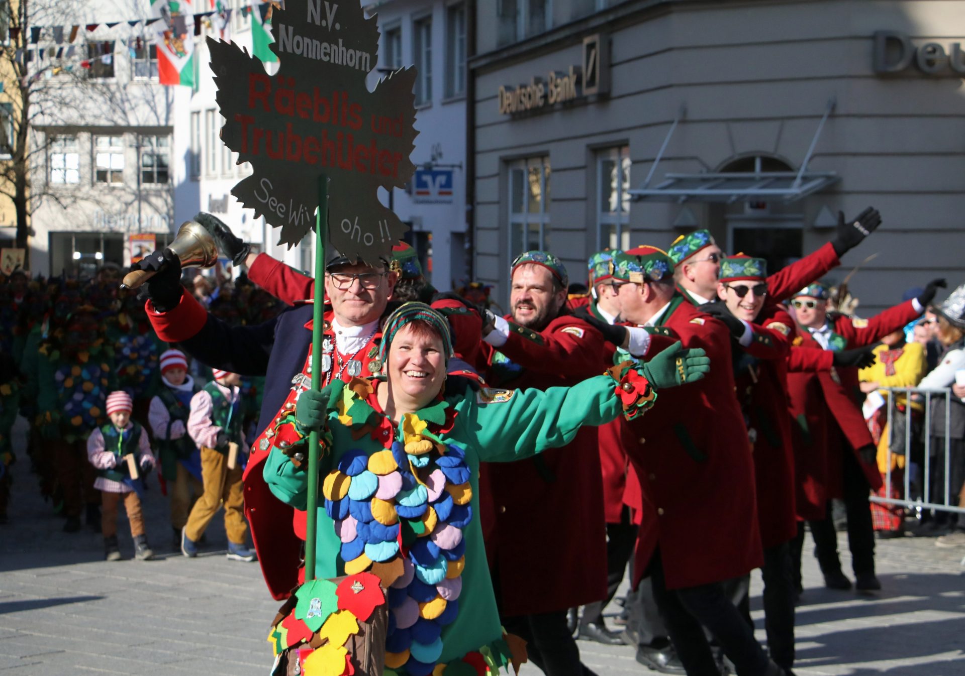 Bei den vielen völlig unterschiedlichen Masken wurde auch daran erinnert, dass hinter den allermeisten Masken – neben den historischen Ursprüngen der Winter- und Krankheitsaustreibung sowie etwas später dem Aufmucken gegenüber der Obrigkeit – auch Persönlichkeiten, Figuren oder Gegebenheiten der jeweiligen Ortschaften stecken. So oder so waren die Zuschauer begeistert, und wenn beim Anschreien des Narrenrufs die richtige Antwort kam, gab es in der Regel eine süße Belohnung. Andernfalls eine ordentliche Portion Konfetti.