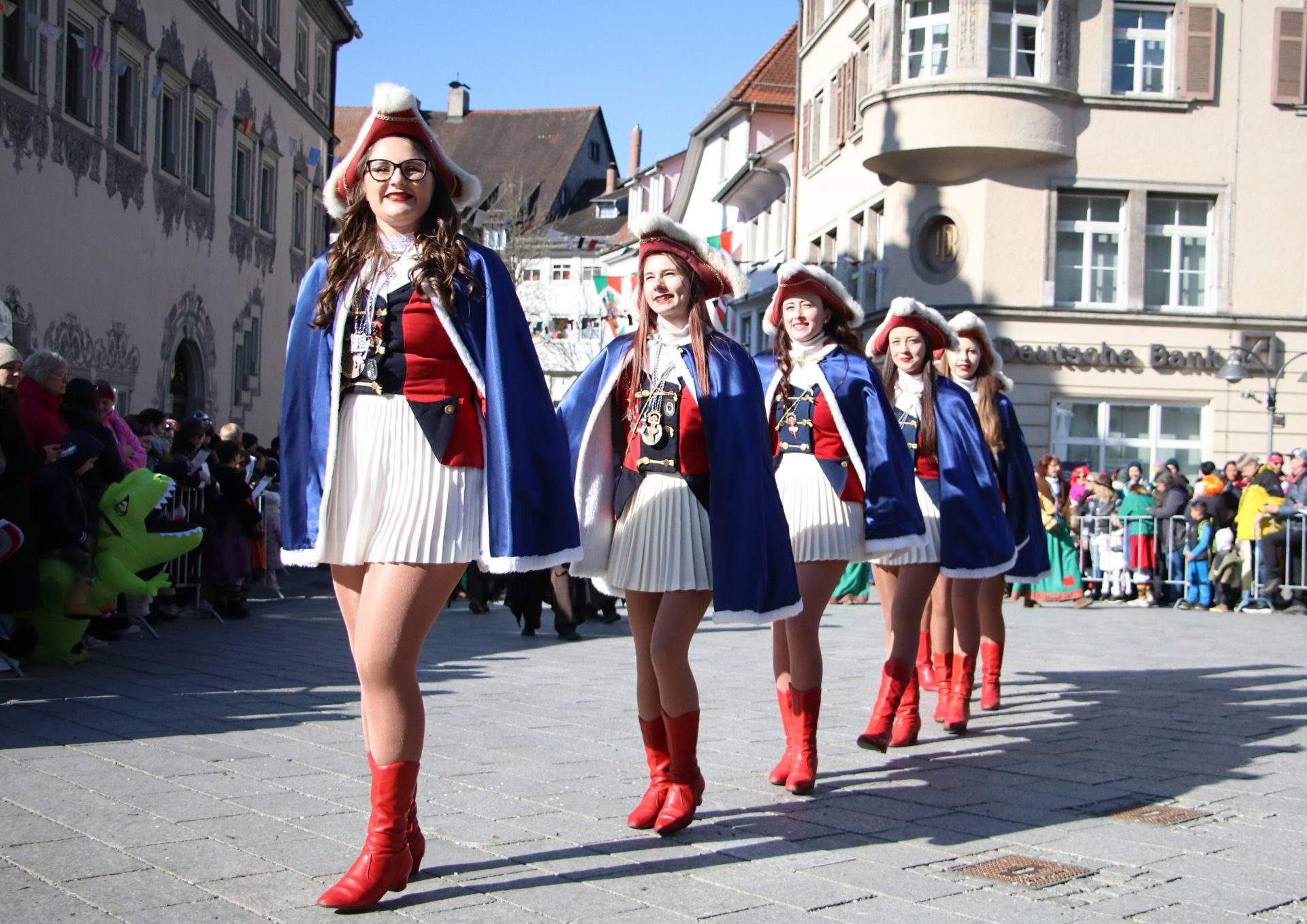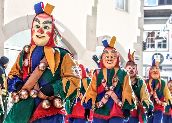Bei strahlendem Sonnenschein zog am Montagmorgen der traditionelle Narrensprung durch die Ravensburger Innenstadt. Der von der Schwarzen Veri Zunft organisierte Sprung zählt seit vielen Jahren zu den größten Brauchtums-Umzügen in der Region. Mit dabei waren in diesem Jahr 59 Zünfte, Fanfarenzüge, Lumpenkapellen und Spielmannszüge. Rund drei Stunden dauerte das farbenfrohe Narrenspektakel, Zehntausende von Zuschauern säumten die Straßen.
