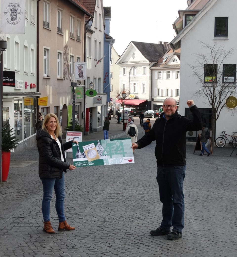 Zwölfmal darf Daniel Moosmann in diesem Jahr das Stadtmarketing aufsuchen und jeweils einen Weingartener Wertgutschein über 44 Euro abholen. Seit er mit seiner Frau in Unterankenreute wohnt, kommen die beiden regelmäßig für ihren Einkauf nach Weingarten.