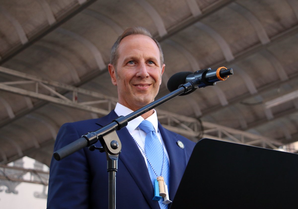 Vor mehreren Tausend Menschen auf dem Marienplatz haben Oberbürgermeister Dr. Daniel Rapp und Dieter Graf, Vorsitzender der Rutenfestkommission, das Rutenfest 2022 eröffnet. Die Auftritte der Trommelgruppen boten dafür am Freitagabend bei strahlend blauem Himmel die traditionell würdige Kulisse.