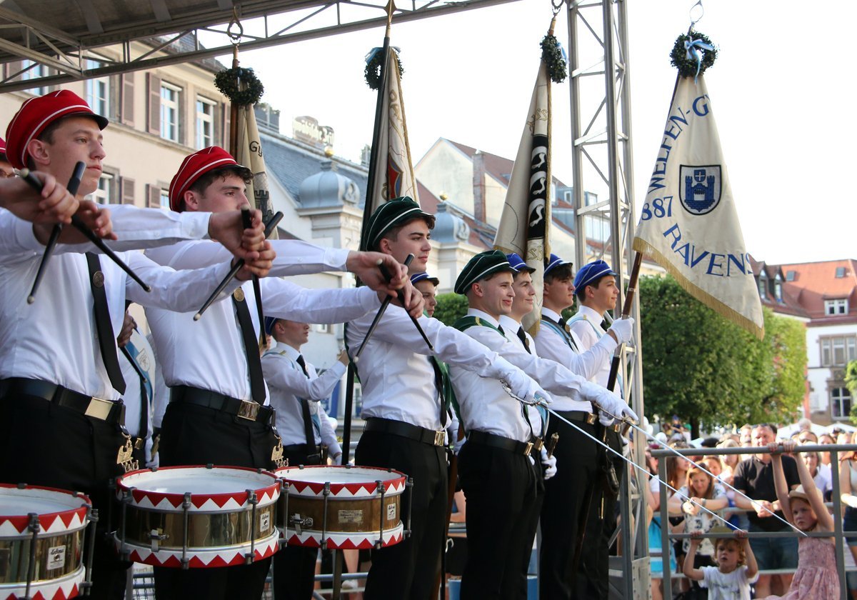 OB Daniel Rapp widmete das Ravensburger Rutenfest nach zweijähriger Corona-Durststecke allen Bürgern und betonte hierzu auch, dass Menschen mitfeiern können, die in ihrer Heimat vor Krieg geflohen sind. „Was wir wollen ist Frieden in der Welt“, sagte Rapp unter großem Beifall. Viel Applaus für den ersten offiziellen Auftritt bekam auch die neu gegründete Mädchen-Trommlergruppe „Turmfalken“.