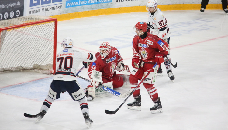 Doch unter Dach und Fach war der eine Punkt noch lange nicht. Nur acht Sekunden nach dem Wiederanpfiff wurde Lukas Mühlbauer beim Halten an der eigenen Bank erwischt, und die restlichen zwei Minuten wurden zur Feuerprobe auch für die mitgereisten Fans. Beherzt brachten die Towerstars das Unentschieden aber über die Zeit. Dramatisch wurde die Angelegenheit auch in der Verlängerung, diesmal auf der Gegenseite. Die Unparteiischen schickten nun Landshuts Wade Bergmann auf die Strafbank, doch die Towerstars konnten die Überzahl nicht zum entscheidenden Treffer nutzen. Letztlich ging es ins Penaltyschießen, und hier standen zunächst die beiden Torhüter Jonas Langmann und Ilya Sharipov mit fünf parierten Anläufen im Blickpunkt, ehe Fabian Dietz als sechster Schütze für die Entscheidung sorgte. In unnachahmlicher Verzögerungstaktik beim Anlauf verlud er seinen früheren Kollegen Jonas Langmann und lupfte den Puck dann eiskalt mit der Rückhand zum 4:3 unter die Latte.