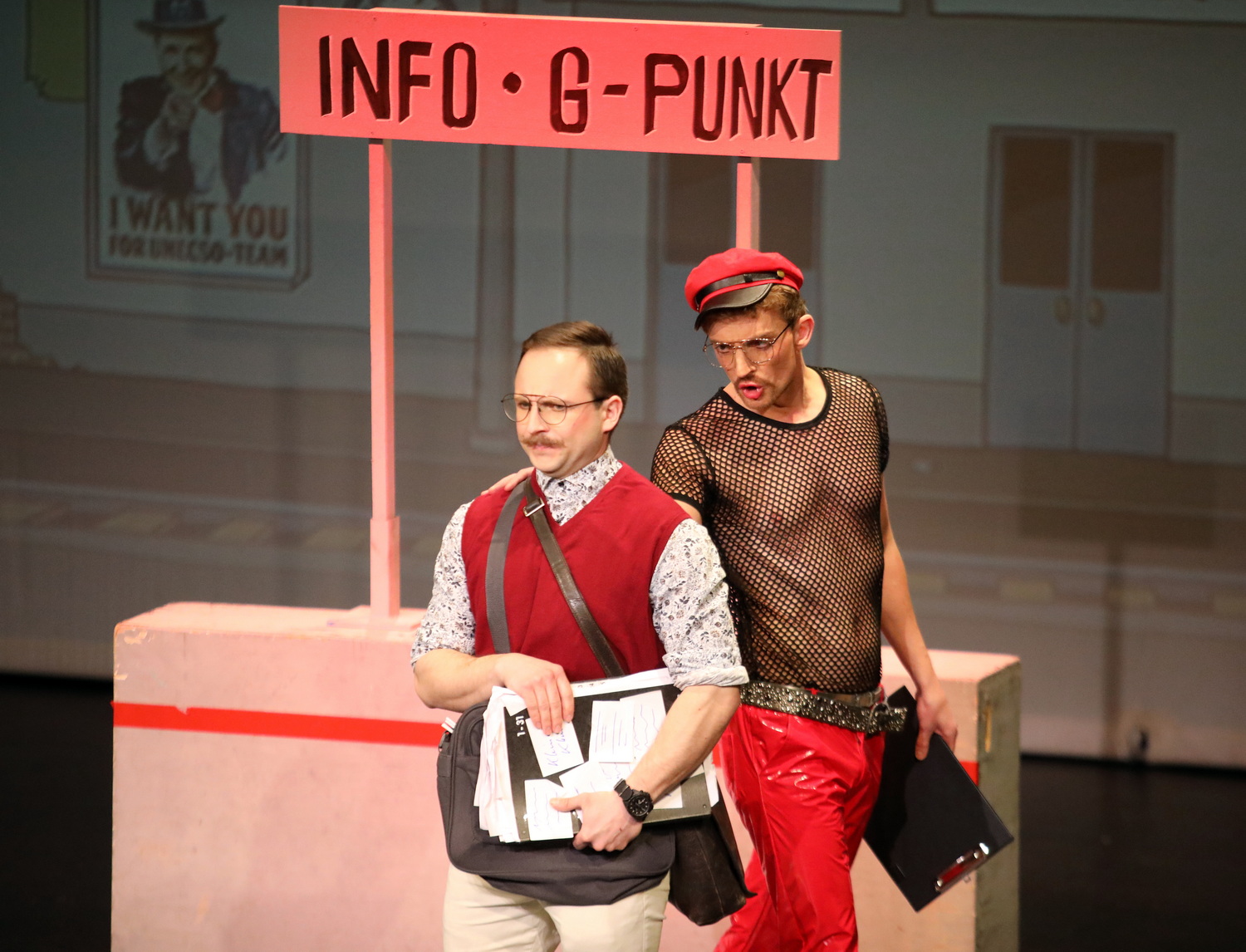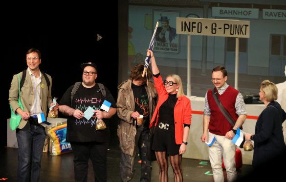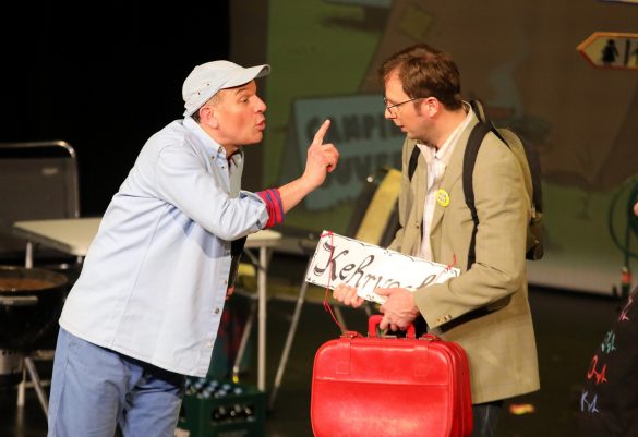 Und dann geht es auch schon los mit der eigentlichen Geschichte „Bon Voyage ohne Blamage“. Natürlich wollen wir hier aus Rücksicht auf die Besucher der noch folgenden Aufführungen nicht zu viel verraten – den vielen Interessierten, die keine Eintrittskarten ergattern konnten, aber auch nichts vom rund zweieinhalbstündigen Spaß vorenthalten.