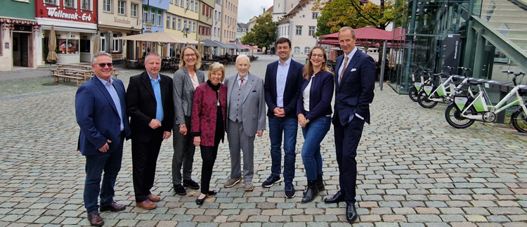 Feierstunde zum 34. Jahrestag der Deutschen Einheit in Ravensburg mit (v.l.n.r.) Markus Brunner (CDU Eschach), Christoph Lüdtke (CDU RV), Antje Rommelspacher (CDU Fraktionsvorsitzende), Ursula und Werner Wolf, Christoph Sitta (CDU Stadtverbandsvorsitzender), Kerstin Schmid (CDU RV), Oberbürgermeister Dr. Daniel Rapp. Bild: CDU Ravensburg
