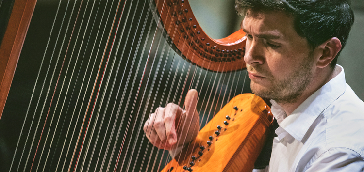 Diese neuen Kompositionen und ihre barocken Vorbilder werden nebeneinander präsentiert und durch die barocke Verzierungspraxis der Diminution miteinander verbunden. Diese Technik verleiht der Musik mehr Lebendigkeit und Ausdruck, indem sie Melodien durch das Einfügen neuer, kürzerer Notenwerte, Läufe und Triller verschönert. Das Programm umfasst unter anderem Werke wie Ian Wilsons „A distant relation„, Kate Moores „Susanna’s lament„, Chikage Imais „Bucolic„, Jan Pieterszoon Sweelincks „Est-ce Mars„ und Bernhard Langs „GAME 10-4-1 Diminuendo„. Maximilian Ehrhardt gehört zur neuen Generation von Interpreten der historischen Harfe. Er kombiniert virtuos Spiel und intensive Erforschung der Quellen mit innovativen Programmen und Konzertkonzepten.