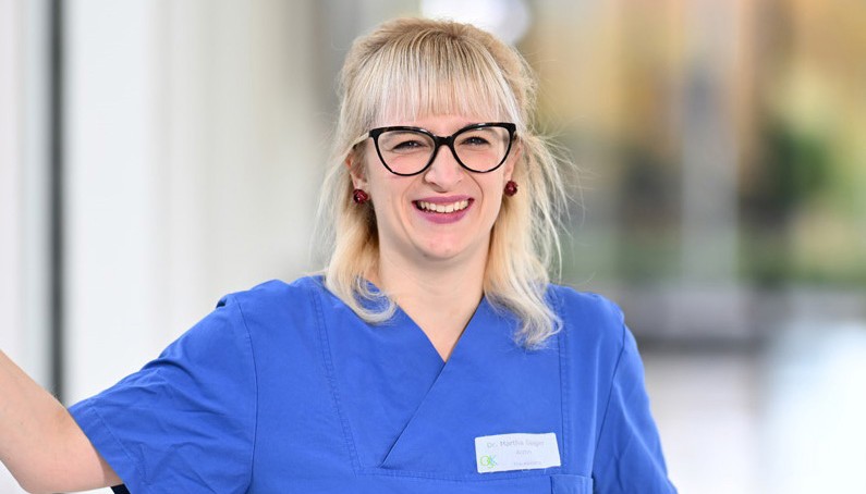 Dr. Martha Geiger legte ihr Abitur mit der Traumnote 1,0 am Sozialwissenschaftlichen Gymnasium in Ravensburg ab und studierte danach in Ulm Medizin – ein Freiwilliges Soziales Jahr im Rettungsdienst (im Studium arbeitete sie als Rettungssanitäterin weiter) hatte sie dazu inspiriert. Ihr Praktisches Jahr absolvierte sie 2017 am Westallgäu-Klinikum in Wangen, wo es ihr so gut gefiel, dass sie nach ihrem Examen 2018 unbedingt bleiben wollte – und auch sechs Jahre lang blieb. Unter Chefarzt Dr. Elmar Mauch absolvierte Dr. Geiger dort die Ausbildung zur Mamma-Operateurin. Seit 2023 ist die passionierte Sängerin, die ab und an auch Hochzeiten musikalisch begleitet, Fachärztin für Gynäkologie und Geburtshilfe.
