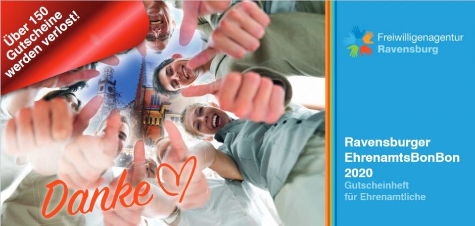 Jedes Jahr unterstützen Ravensburger Gastronomen, Einzelhändler und Firmen die Ravensburger Freiwilligenagentur im Rathaus mit großzügigen Gutscheinen für das Ravensburger EhrenamtsBonBon. „Gerade in diesen schweren Zeiten der Pandemie ist es alles andere als selbstverständlich, dass diese Gutscheine gesponsert werden. Das ist ein starkes Zeichen für die Solidarität in unserer Ravensburger Stadtgesellschaft“, sagt Sophie Bader, Leiterin der Freiwilligenagentur. Die Verlosung an Menschen, die sich ehrenamtlich für ihre Mitmenschen engagieren, sei es in Vereinen, Organisationen oder im privaten Bereich ist Anfang Mai erfolgt.
