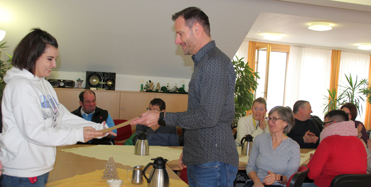 Rund ein Dutzend ehemaliger Arbeitskolleginnen und -kollegen aus der WfbM ließen es sich nicht nehmen und verabschiedeten Kübra Duman feierlich an ihren neuen Arbeitslatz. Auch Martin Lutz, Arbeitsbereichsleitung Allgäu, war mit von der Partie. Er überreichte ihr nicht nur eine Urkunde für zehn Jahre WfbM-Mitarbeit, sondern gratulierte ihr auch zu dem Erfolg, „wenn auch mit einem weinenden Auge, denn wir werden Sie in der WfbM vermissen“.