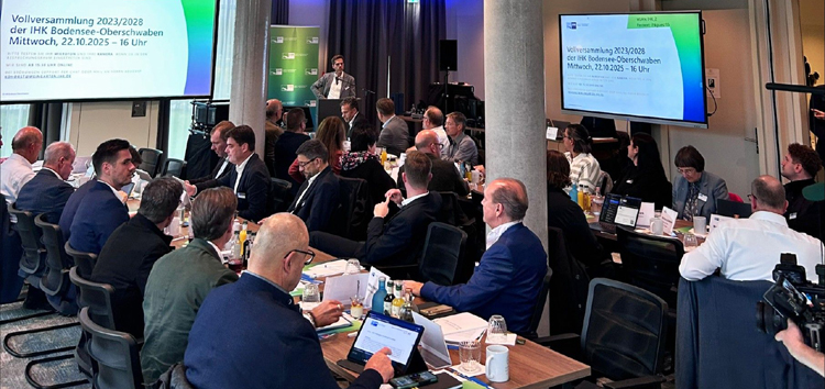 Grundlegende Reformen zur Stärkung der Wirtschaft mahnte Martin Buck, Präsident der Industrie- und Handelskammer Bodensee-Oberschwaben (IHK), in seiner Begrüßung der Vollversammlungsmitglieder an. Das Vertrauen in die Wirtschaftspolitik der Regierung sinke immer mehr, die Maßnahmen zur Bürokratieentlastung zeigten bislang zu wenig Wirkung, zunehmende Belastungen schwächten die Wirtschaft und es gebe weiterhin keine Planungssicherheit in vielen Bereichen. „Der Handlungsbedarf wird immer größer – statt eines Abbaus nehmen Auflagen und Bürokratie in der betrieblichen Praxis aber weiter zu“, kritisierte Buck. Fehlende starke politische Mehrheiten bedingten einen gefährlichen Reformstau. „Warum ist es politisch so schwer, Dinge zu ändern, die schlecht sind?“, fragte der IHK-Präsident. Eine große Mehrheit der Bürger sehe einen großen Reformbedarf in Deutschland. Laut einer aktuellen Umfrage hielten mehr als 80 Prozent grundlegende Reformen für nötig. Doch nur eine Minderheit sei bereit, damit verbundene Lasten zu tragen. Die Wirtschaft zeige Bereitschaft, unbequeme Entscheidungen zur Sicherung des Wirtschaftsstandorts und der Wettbewerbsfähigkeit mitzutragen.