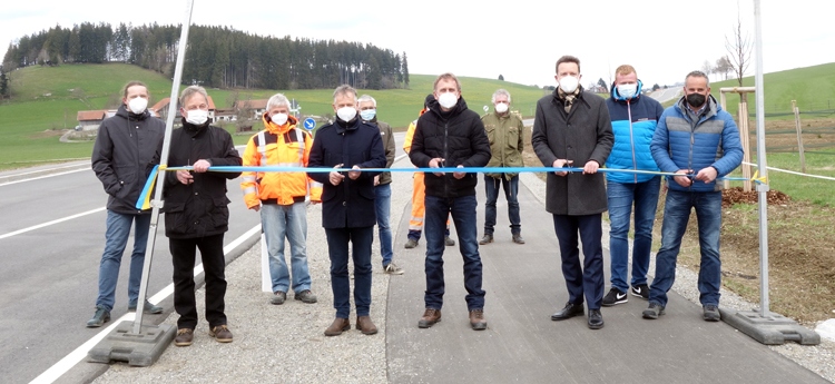 Gestern hat er gemeinsam mit Stefan Michaelis, Ortsvorsteher von Hinznang sowie Leutkirchs Oberbürgermeister Hans-Jörg Henle und zahlreichen Projektbeteiligten und Firmenvertretern den rund 1,2 km langen Rad- und Gehweg zwischen der Hinznang und Frauenzell nach rund acht Monaten Bauzeit übergeben.