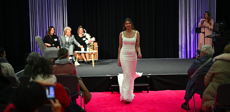 Und, das ist schon Tradition, man kann während der „Ewig Dein“ auch selbst kreativ werden: Wer sich zum Handlettering hinsetzt, lernt dort, wie man beispielsweise Einladungskarten bildschön von Hand beschriften kann. Bei einem anderen Anbieter bastelt man Haarschmuck oder Anstecker aus Trockenblumen. Ein weiterer Messe-Klassiker wird im Januar 2026 weiter ausgebaut: Die „Wedding-Bühne“ bekommt einen zusätzlichen Laufsteg, damit die Modeschauen noch besser zur Geltung kommen. Auf der Bühne gibt es an beiden Messe-Tagen kurze Vorführungen, mehr als 20 Programmpunkte sind es pro Tag. Wer mag, setzt sich hin und schaut eine Weile zu: bei der Brautkleid-Schau oder den neuesten Modellen des Herrenausstatters, bei Interviews mit Rednerinnen oder Goldschmiedinnen, bei kurzen Musik-Einlagen oder wenn sich Locations vorstellen. Moderator Nik Herb ist der Gastgeber und sorgt für unterhaltsame Interviews mit den Hochzeits-Experten.