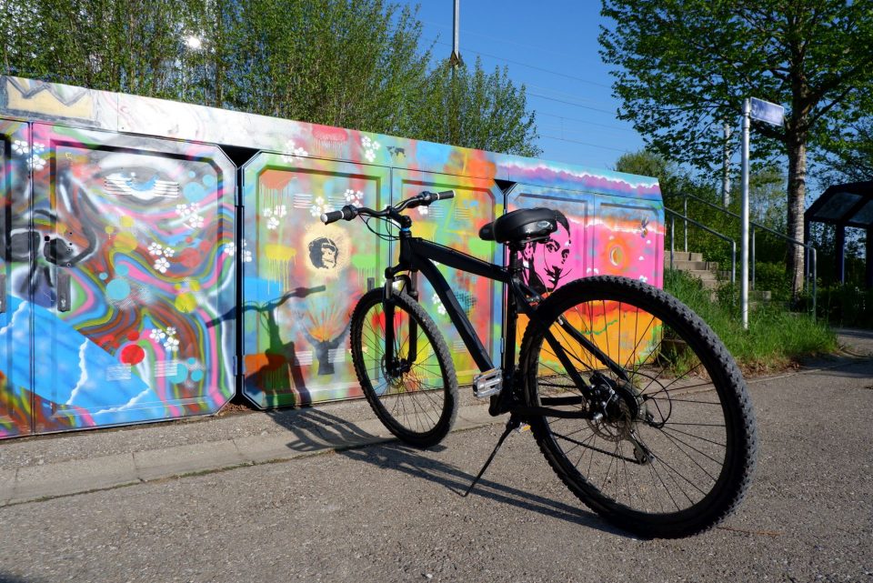 Dank der Initiative des städtischen Teams Jugendarbeit unter der Leitung von Sven Pahl und Alexandra Sailer strahlen die Fahrradboxen am westlichen Stadtrand in neuem Glanz. Ausgestattet mit Farbdosen und Grundierung aus Mitteln des Jugendfonds des Bundesprogramms Demokratie Leben! gestaltete der Künstler Marcel Zetzsch farbenfrohe Kunstwerke auf den kleinen Garagen. Bei den Motiven wie dem Porträt von Salvador Dali und einer aufregenden Galaxie wurde dem Künstler freie Hand gelassen.