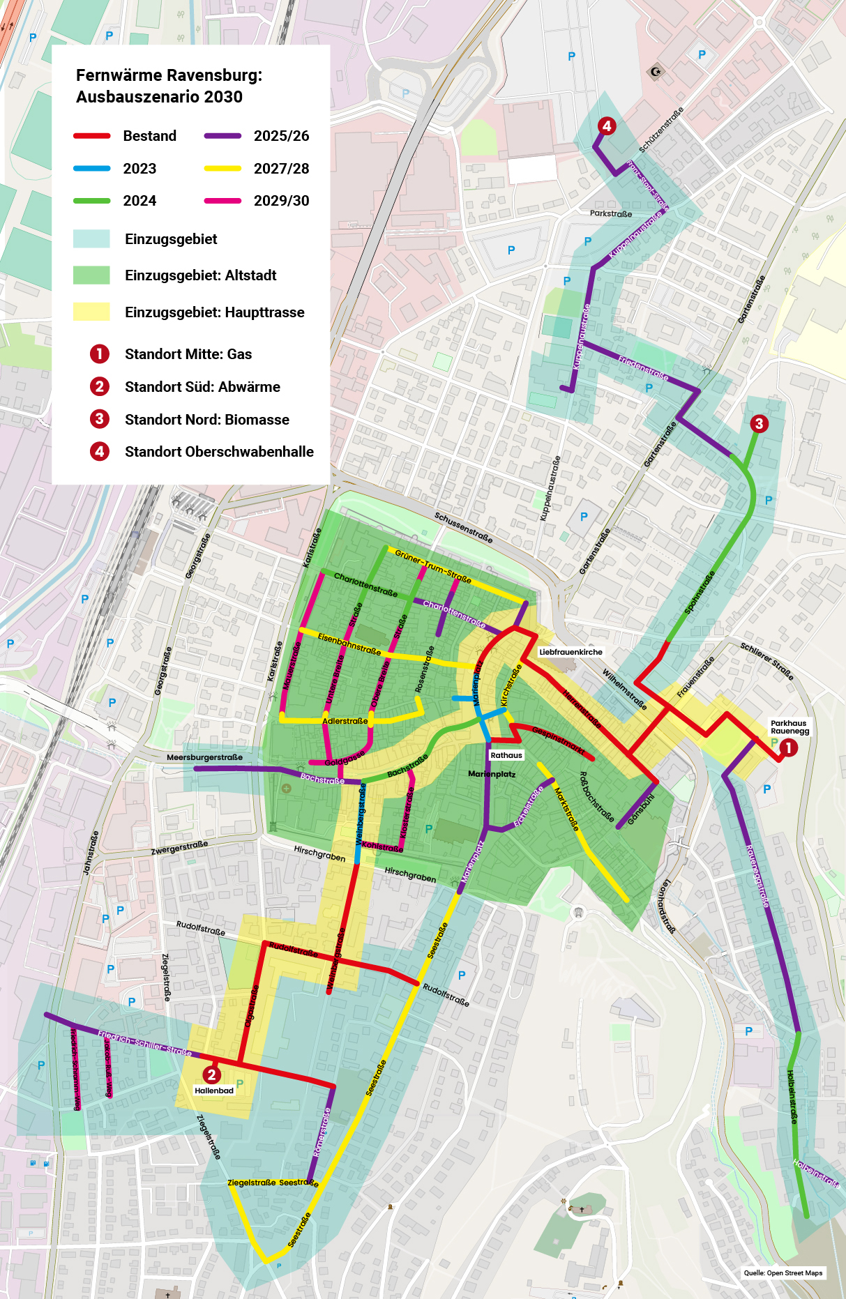 „Wir treiben den Ausbau der Fernwärme zügig und wie geplant voran. So reduzieren wir künftig die Abhängigkeit von importiertem Erdgas und Öl und reduzieren gleichzeitig klimaschädliche Treibhausgase“, informiert Miriam Sepke-Vogt, Projektleiterin bei der TWS. „Das Schlüsselelement ist im nächsten Jahr die Bachstraße. Hier planen wir, zwei bestehende Teilnetze miteinander zu verbinden, und gehen einen großen Schritt in Richtung eines flächendeckenden Fernwärmenetzes für die Ravensburger Altstadt. Außerdem bereiten wir schon die Erweiterung des Netzes vor, die dann in den kommenden Jahren realisiert wird.“