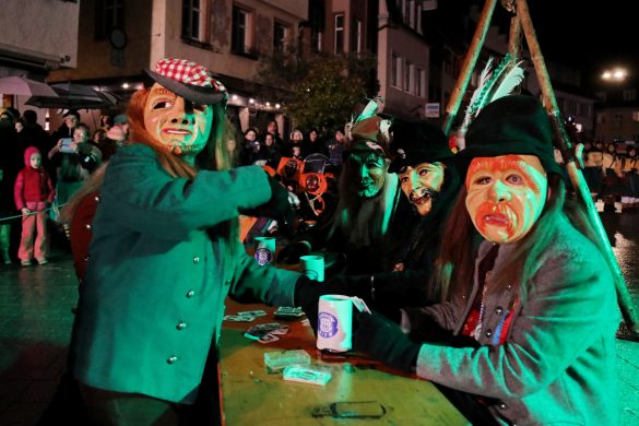 Zur Einstimmung auf die restlichen Programmpunkte der Ravensburger Straßenfasnet haben wir für Sie noch ein paar Eindrücke von der (leider ziemlich nass gewordenen) Maskenbefreiung am Mittwochabend auf dem Gespinstmarkt. Fotos: Kim Enderle