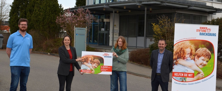 Einen Spendenscheck in Höhe von 1.500 Euro erhielt die Kinderstiftung Ravensburg von Mitarbeiterinnen und Mitarbeitern des Ravensburger Fabrik-IT-Spezialisten FORCAM. Der Betrag sei im Rahmen einer Mitarbeiter-Auktion zusammengekommen, berichtete Marco Ahrens, Master of Engineering, Connectivity, der zusammen mit Marketing-Managerin Madeleine Dornberger den Spendenscheck an Vertreter der Kinderstiftung Ravensburg übergab.