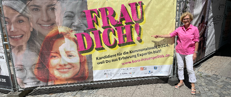 Frau Dich! Kandidiere für die Kommunalwahl 2024, weil Du aus Erfahrung Expertin bist!“ heißt es auf Plakaten, Flyern und Bauzaunbannern. B-o-R-a will mit der breit angelegten Kampagne, die vom Bundesprogramm „Demokratie leben!“ gefördert wird, viele Frauen in Stadt und Landkreis motivieren, für den Gemeinderat oder den Kreistag zu kandidieren.