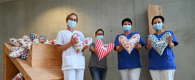 Die herzförmigen Kissen werden neben den an Brustkrebs erkrankten Patienten auch an schwerkranke Menschen in der Palliativstation verschenkt. „Die Momente, in denen wir den kranken Patienten das Herzkissen übergeben, sind unvergesslich“, erzählt Beate Metzler, Fachfrau für komplementäre Pflege im Onkologischen Zentrum am EK. Die Freude über den kleinen Seelentröster mit der persönlichen Nachricht sei jedes Mal sehr groß und für viele Patienten werden die weichen Herzen zu täglichen Begleitern.