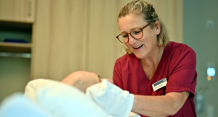 Rund 400 Gäste wurden in den vergangenen fünf Jahren im Hospiz Schussental begleitet. Dabei reicht die Verweildauer in einem der acht Einzelzimmer von einem Tag bis zu etwa acht Monaten, durchschnittlich verbringen die Gäste vier Wochen im Hospiz. Um ihr Wohl kümmern sich 23 Mitarbeitende in Pflege und Hauswirtschaft – sowohl sehr gut ausgebildetes Fachpersonal als auch Fachkräfte, die hier erste Erfahrungen in der Palliativpflege machen und sich weiterbilden. Eine von ihnen ist Nicole Zipfel, bis vor einigen Monaten noch in leitender Funktion in der ambulanten Pflege tätig: „Ich freue mich jeden Tag auf die Arbeit. Wer gerne pflegt, dem geht es im Hospiz gut. Für die Sterbenden da zu sein, das kleine Team, die Zusammenarbeit auf Augenhöhe mit den Medizinern – ich bin froh, dass ich den Schritt gemacht habe. Ich lerne jeden Tag dazu und bekomme so viel zurück.“