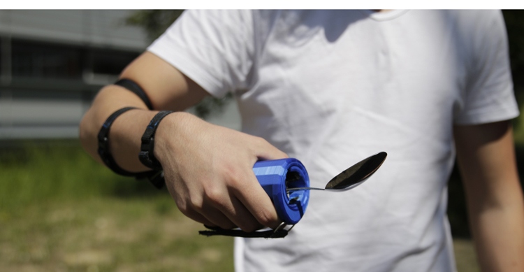 Der ergonomische Handadapter ermöglicht den sicheren Gebrauch von Alltagsgegenständen, etwa eines Löffels. Foto: Michael Pfeiffer