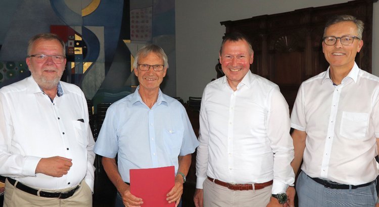 Sein Name ist untrennbar mit dieser wegweisenden Idee, ein Mehrgenerationenhaus, das auf Selbst- und Nachbarschaftshilfe aufbaut, zu etablieren. In dankbarer Anerkennung für seine Verdienste für die Stiftung Liebenau erhielt er nun, im Rahmen einer kleinen Feierstunde, das Ehrenzeichen der Stiftung Liebenau aus den Händen der drei Vorstände der Stiftung Liebenau: Prälat Michael H. F. Brock, Dr. Berthold Broll und Dr. Markus Nachbaur.