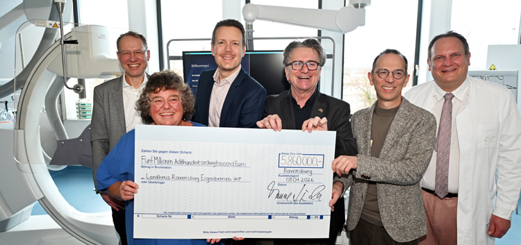 Im Rahmen eines Besuchs im Klinikum übergab Baden-Württembergs Minister für Soziales, Gesundheit und Integration Manne Lucha einen Förderscheck des Landes Baden-Württemberg in Höhe von knapp 5,9 Millionen Euro aus dem Landeskrankenhausbauprogramm. Insgesamt investierte die Oberschwabenklinik gemeinsam mit dem Landkreis mehr als 9 Millionen Euro in die bauliche und technische Weiterentwicklung der Kardiologie am EK.