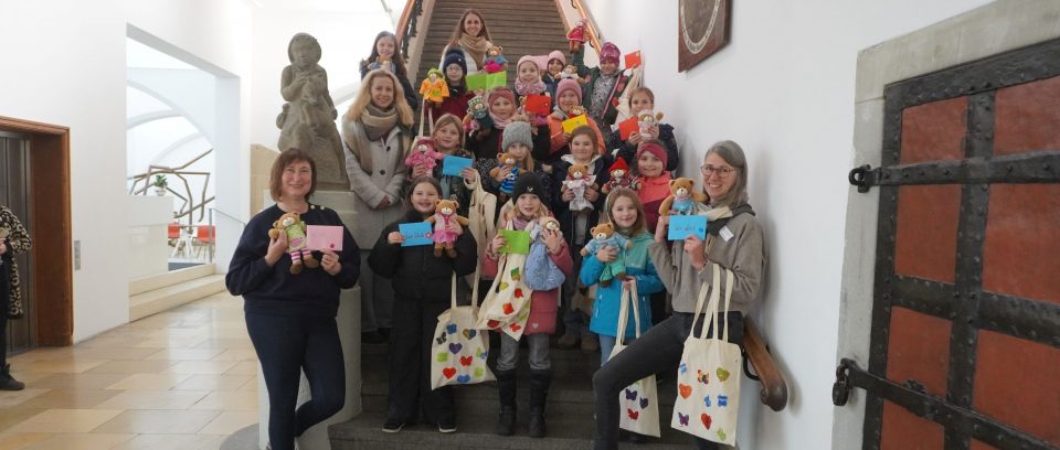Die HoffnungsBären werden gesammelt und dann an Organisationen übergeben, die direkt mit traumatisierten Kindern in Kontakt stehen. Die erste Übergabe von 210 Bären fand Anfang Dezember 2024 im Ravensburger Rathaus mit Oberbürgermeister Dr. Daniel Rapp statt. Er zeigte sich tief berührt von den kleinen personifizierten Bären und den Schicksalen der Kinder.