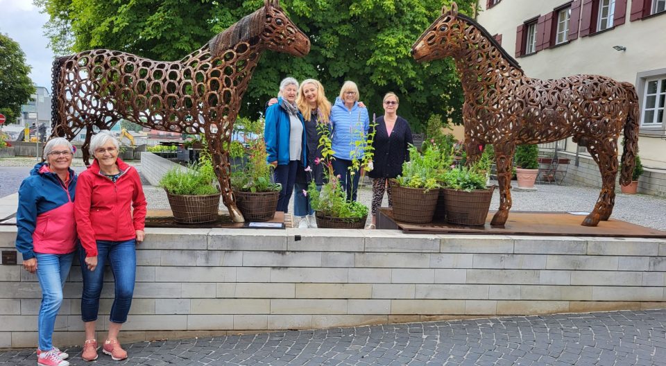 Die Ehrenamtlichen der Gruppe Lebendiges Weingarten haben ein neues Projekt: Zwei tonnenschwere, mit Kräutern geschmückte Pferde aus Hufeisen sollen über den Sommer auf den Münsterplatz locken.