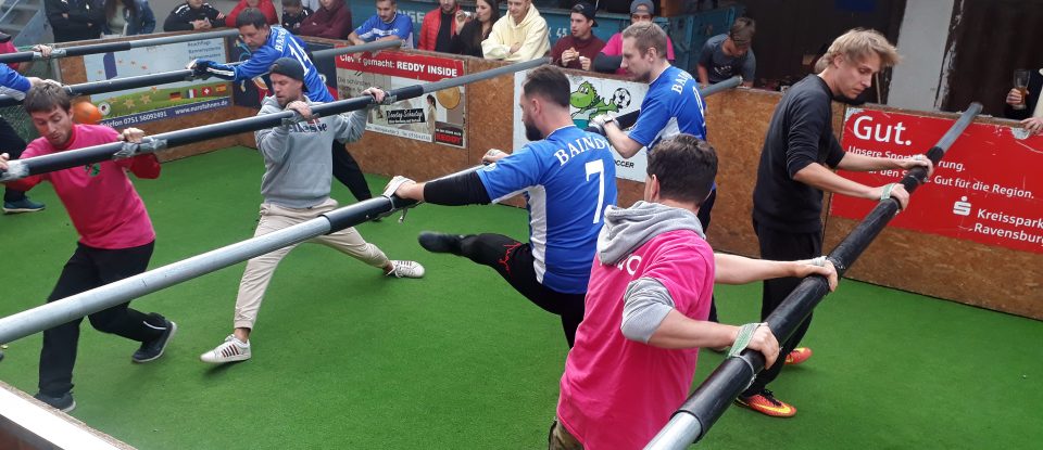 Am Samstag (21. September) findet in Baindt das 18. Human Table Soccer-Turnier statt – zum zwölften Mal ausgetragen als Deutsche Meisterschaft. Seit dem Jahr 2007 organisiert die KJG Baindt – ausgenommen von zwei Jahren Corona-Pause – das Turnier. Seit der Gründung des ersten Deutschen Human Table Soccer-Vereins (HTSV Baindt) Ende 2012 fungiert dieser als Co-Organisator und sorgt für die offizielle Bezeichnung, auf die man in Baindt durchaus stolz ist. Beim Human Table Soccer agieren fünf Spieler pro Team an Stangen fixiert wie Tischkicker-Figuren. Das verspricht Spannung und einige Lacher, ist aber durchaus anstrengend.