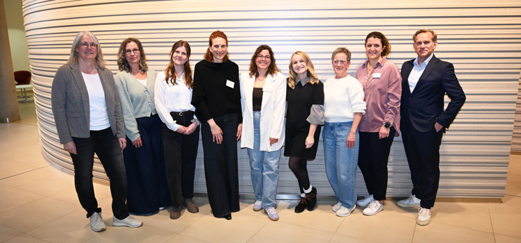 von links nach rechts: Carmen Zwerger (Krebsberatungsstelle), Rauchfrei-Trainerin Evelyne Stumpp, Ernährungstherapeutin Michelle Götz, Oberärztin Dr. Andera Salama Müller (Leiterin des Ernährungsteams), Ernährungstherapeutin Klara Steiner, MammaCare-Trainerin Michelle Lingg, Regina Hartinger (Krebsberatungsstelle), Jennifer Bentele (Onkologische Trainings- und Sporttherapeutin) sowie Dr. Gerhard Fischer, Leiter des Onkologischen Zentrums der OSK. Bild: Jürgen Schattmann/OSK